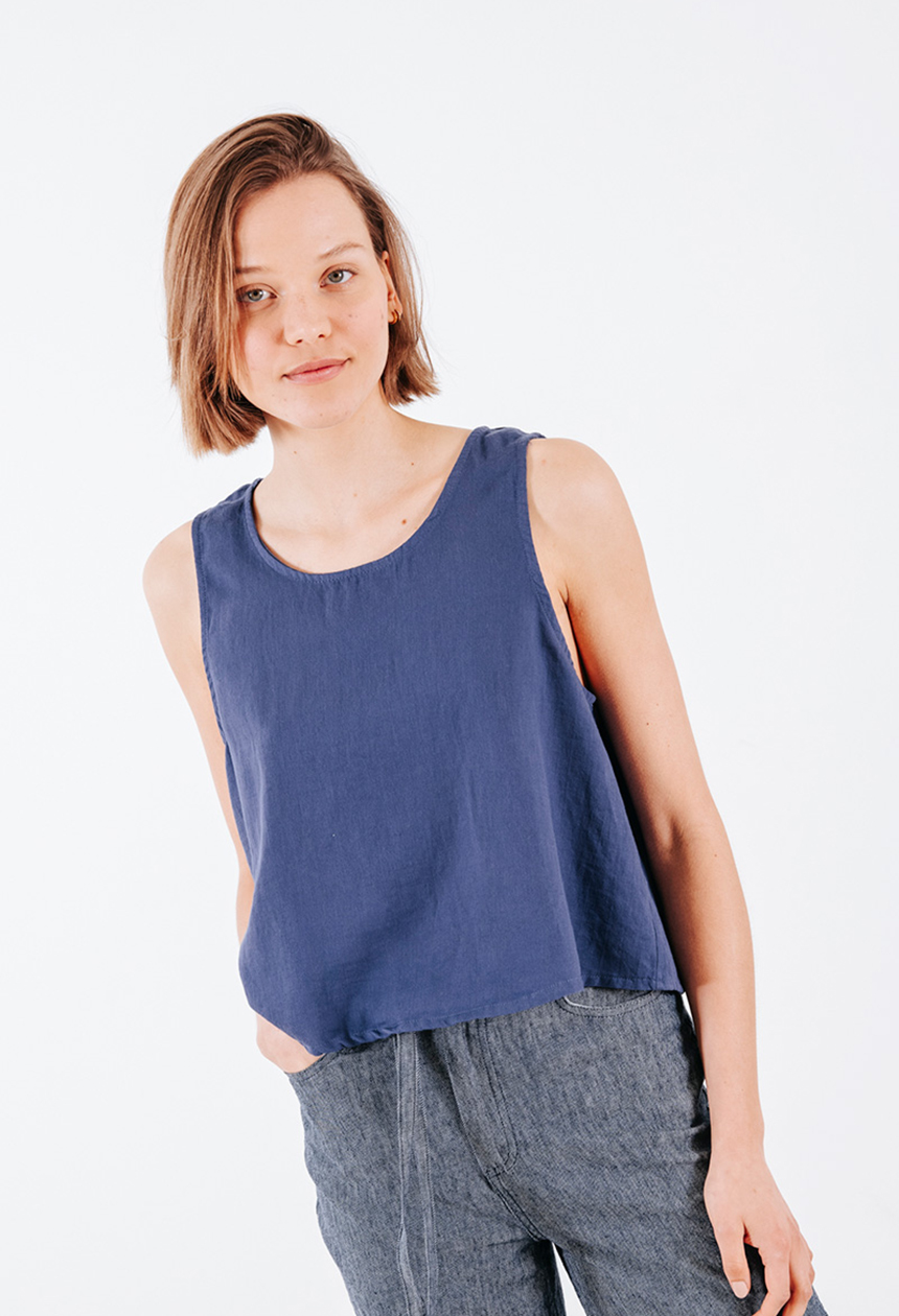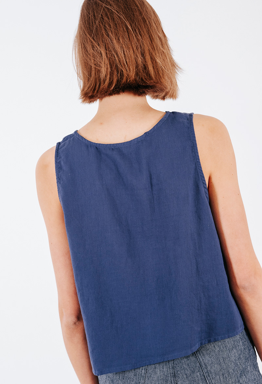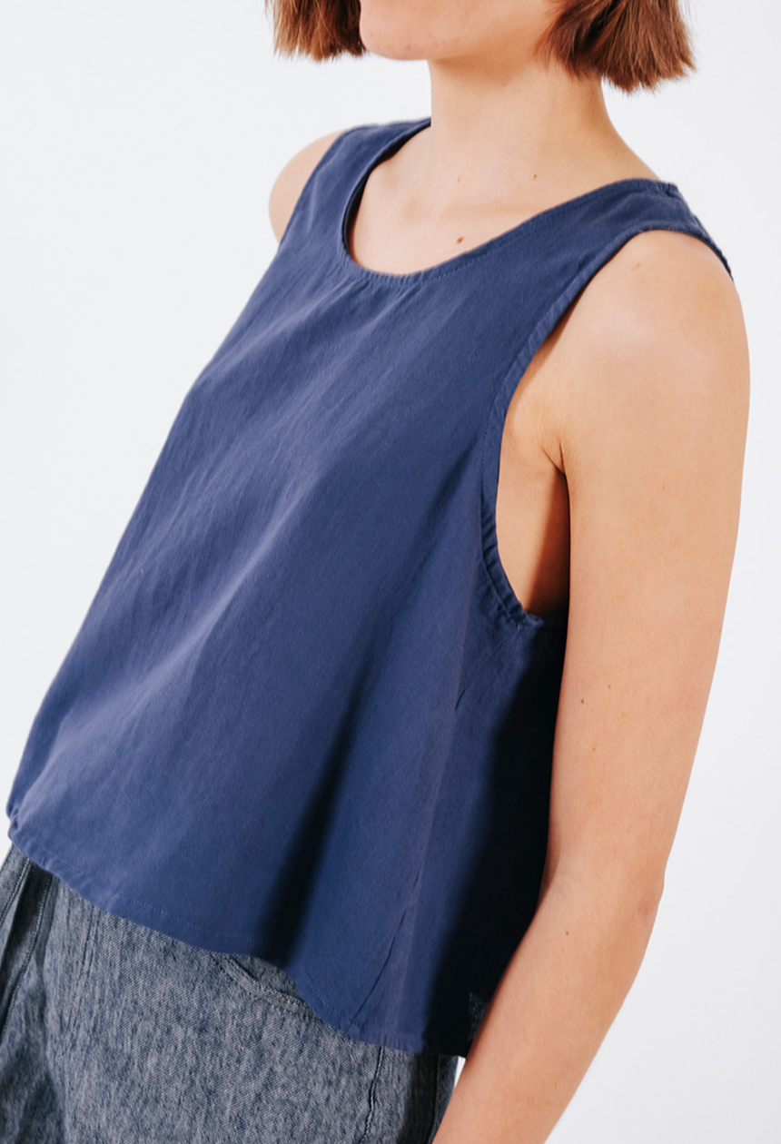 Βαμβακερή αμάνικη μπλούζα με στρογγυλή λαιμόκοψη.