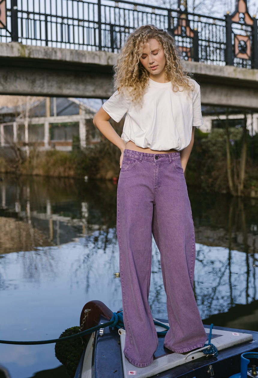 Παντελόνι τζιν, με wide-leg γραμμή που πέφτει ίσια και δυναμικά μέχρι κάτω, επιτρέποντας να φορεθεί τόσο με sneakers όσο και με heels, από το πρωί μέχρι το βράδυ.