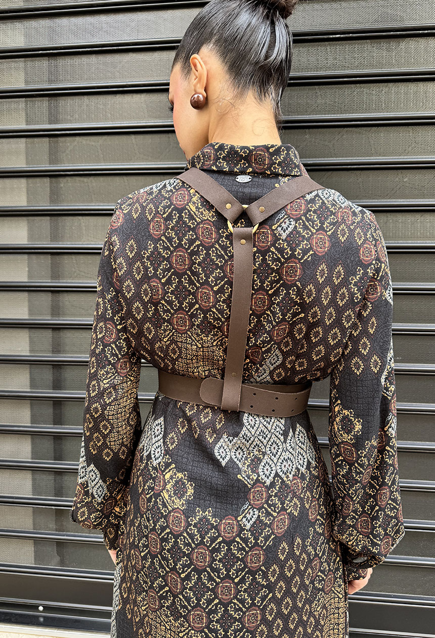 Ένα statement αξεσουάρ που προσθέτει χαρακτήρα και κομψότητα σε κάθε πουκάμισο, φόρεμα ή σακάκι. Κατασκευασμένη από ποιοτικό συνθετικό δέρμα, αγκαλιάζει τη μέση με ρυθμιζόμενα λουριά και μεταλλικές αγκράφες, προσφέροντας τέλεια εφαρμογή και μοντέρνο στυλ.