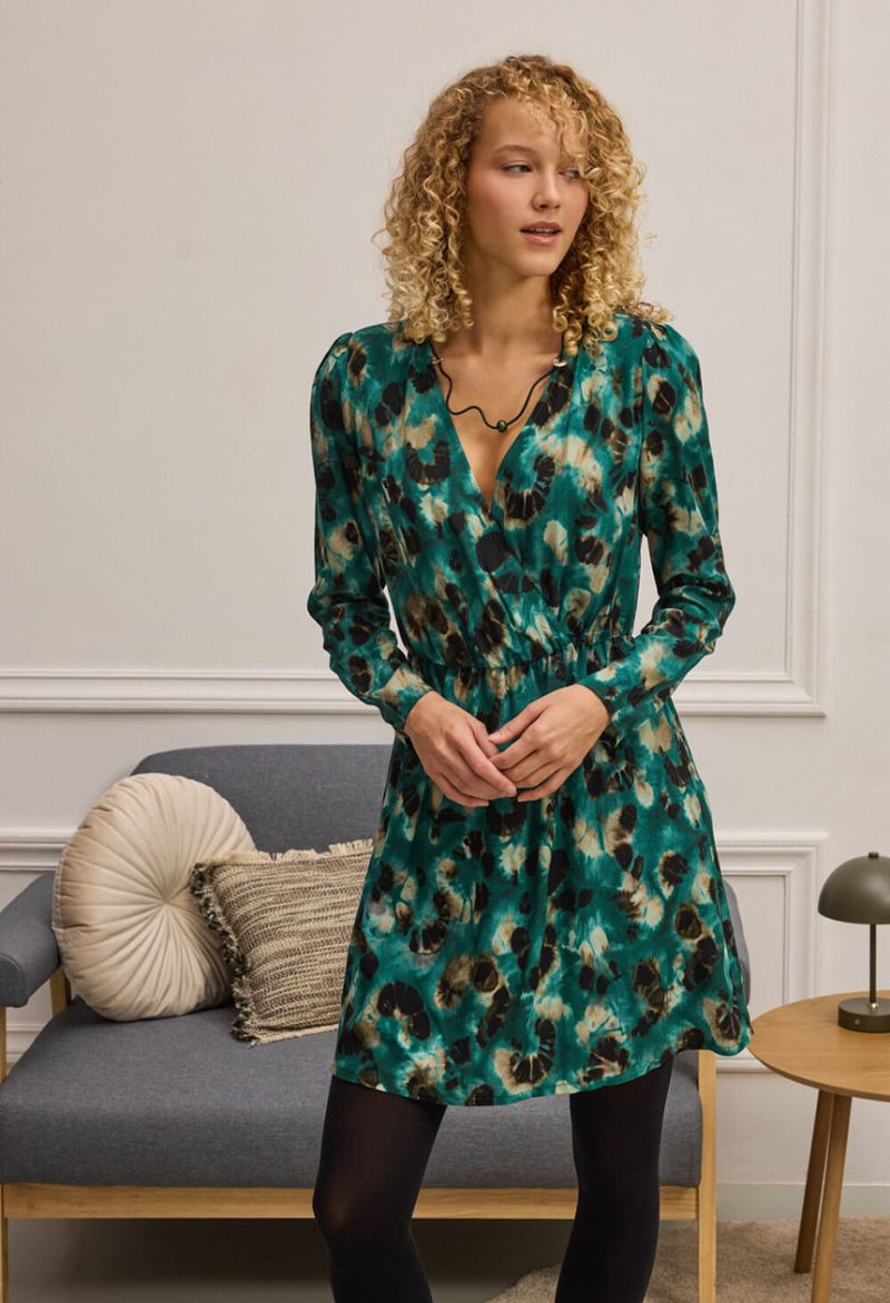 Από 100% βισκόζη με ιδιαίτερο tie dye print και ανάλαφρη, αέρινη φούστα που κολακεύει φυσικά το σώμα. Το επάνω μέρος αγκαλιάζει τον κορμό με κομψό κρουαζέ άνοιγμα, ενώ οι βάτες στους ώμους προσθέτουν δομή και στυλ. Ελληνικό προϊόν