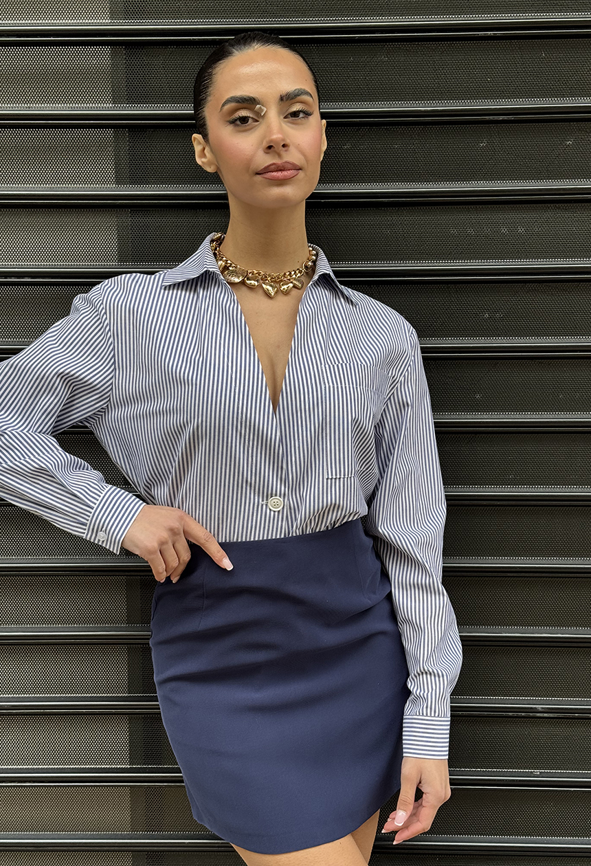 Φούστα μίνι με τέλεια εφαρμογή και αίσθηση θηλυκότητας,κλείνει με κρυφό φερμουάρ στο πίσω μέρος.