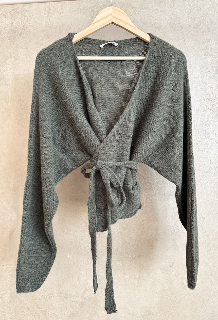 Μπλούζα κρουαζέ,με μαλακή πλέξη,λαιμόκοψη με V,μπορεί να φορεθεί και ανοικτή σαν ζακέτα.