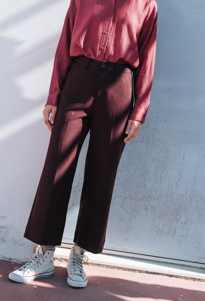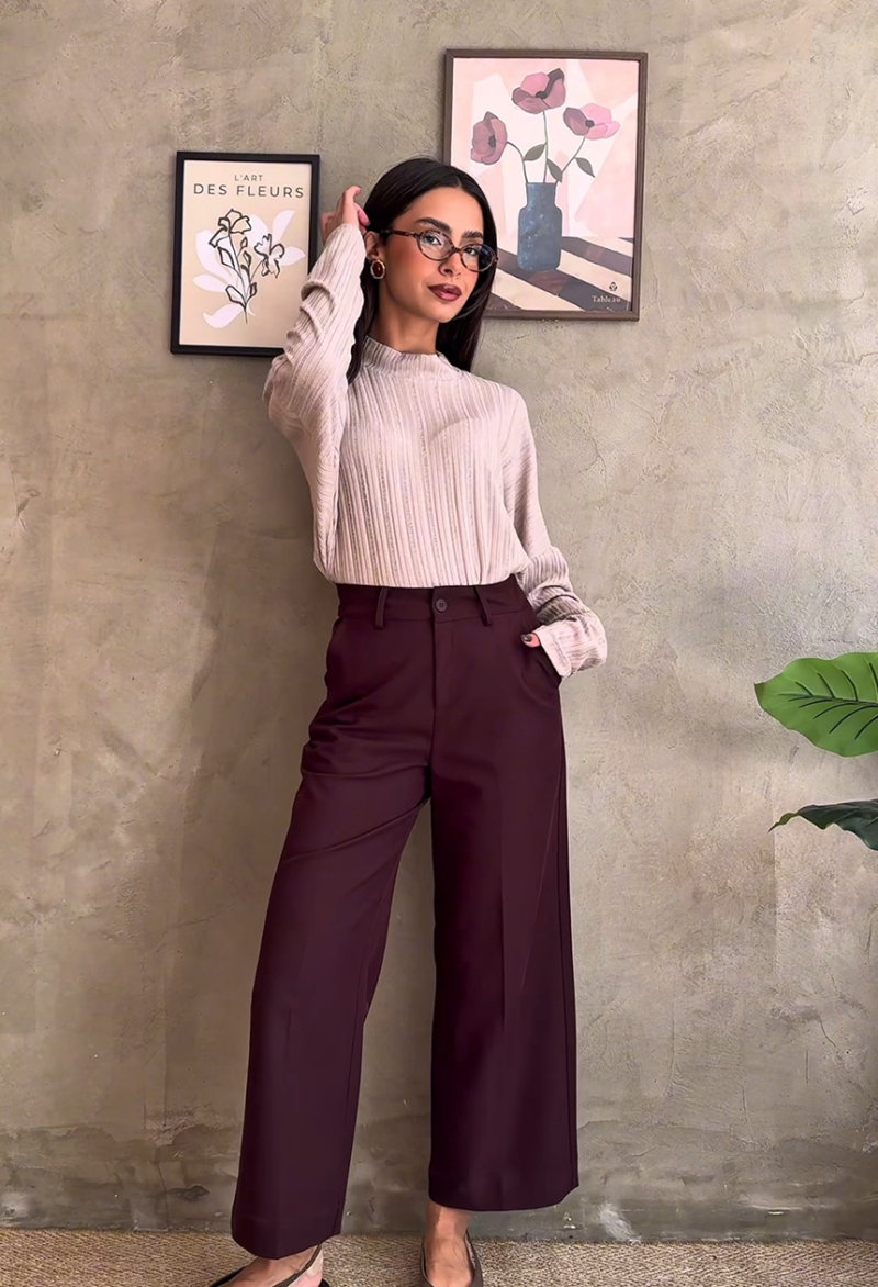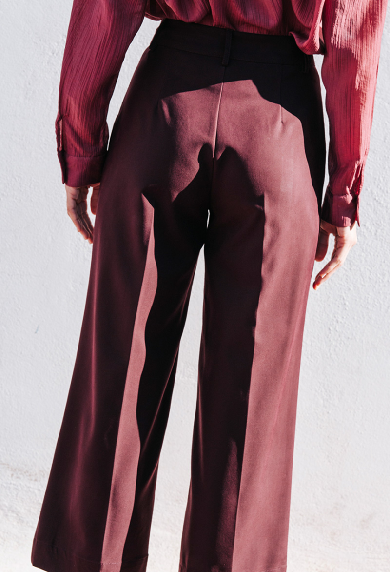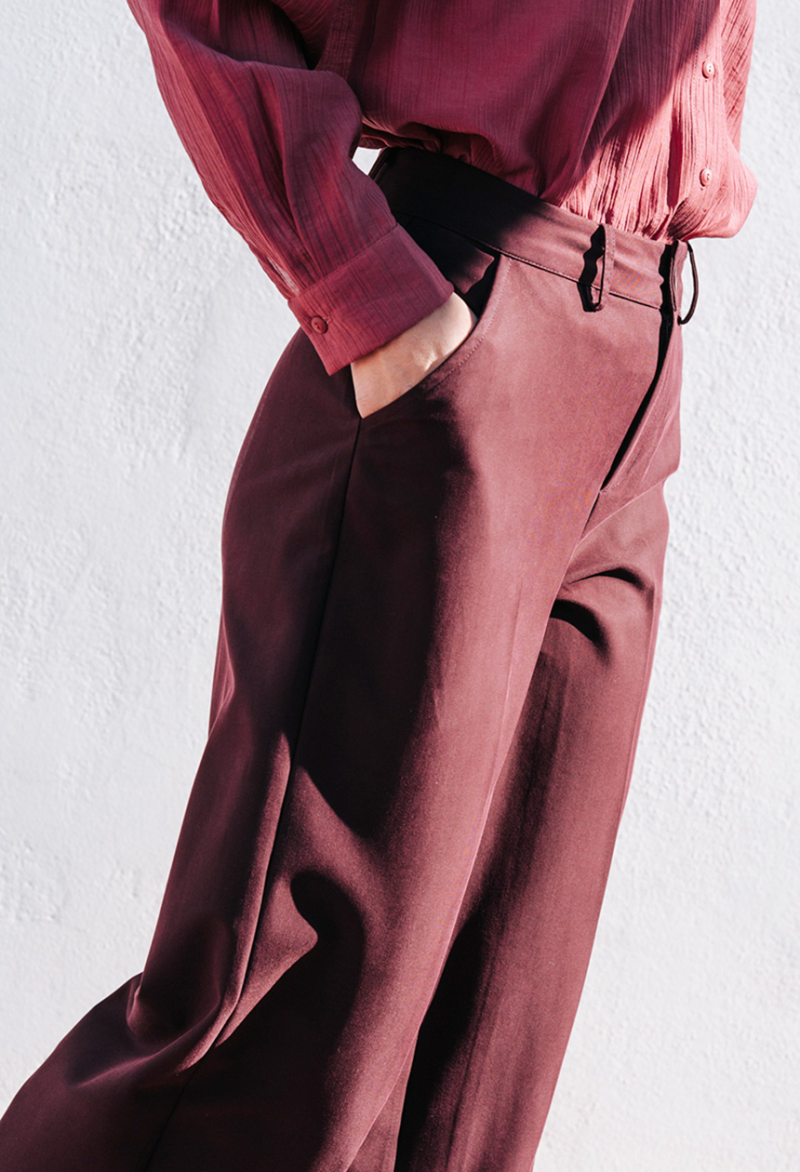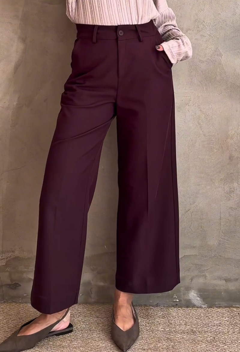 Φαρδύ παντελόνι σε ίσια γραμμή, με τσέπες στο πλαί, κλείσιμο μπροστά με φερμουάρ και κουμπί.