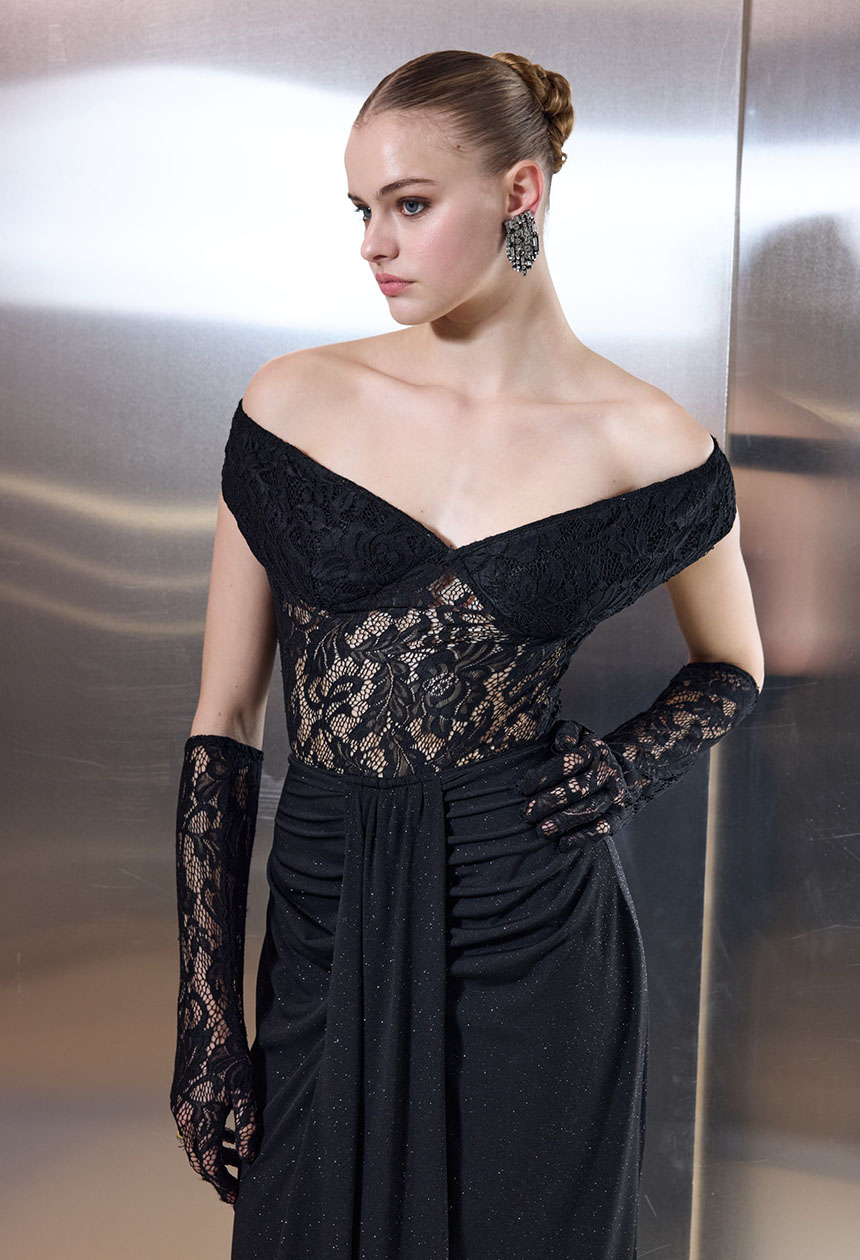Αυτό το κομψό κορμάκι από δαντέλα αποπνέει αισθησιακή φινέτσα και εκλεπτυσμένη θηλυκότητα. Κατασκευασμένο από λεπτεπίλεπτη, περίτεχνη δαντέλα, διαθέτει μια κολακευτική γραμμή που αναδεικνύει τις φυσικές καμπύλες του σώματος. Τα ασορτί δαντελένια γάντια ολοκληρώνουν το look, προσθέτοντας μια δραματική και πολυτελή πινελιά. Απαλό, ελαφρύ και με εξαιρετική προσοχή στη λεπτομέρεια, αυτό το statement κομμάτι είναι ιδανικό για κομψές βραδινές εμφανίσεις ή ιδιαίτερες περιστάσεις, προσφέροντας ένα τολμηρό αλλά κομψό στυλ με διαχρονική αξία.