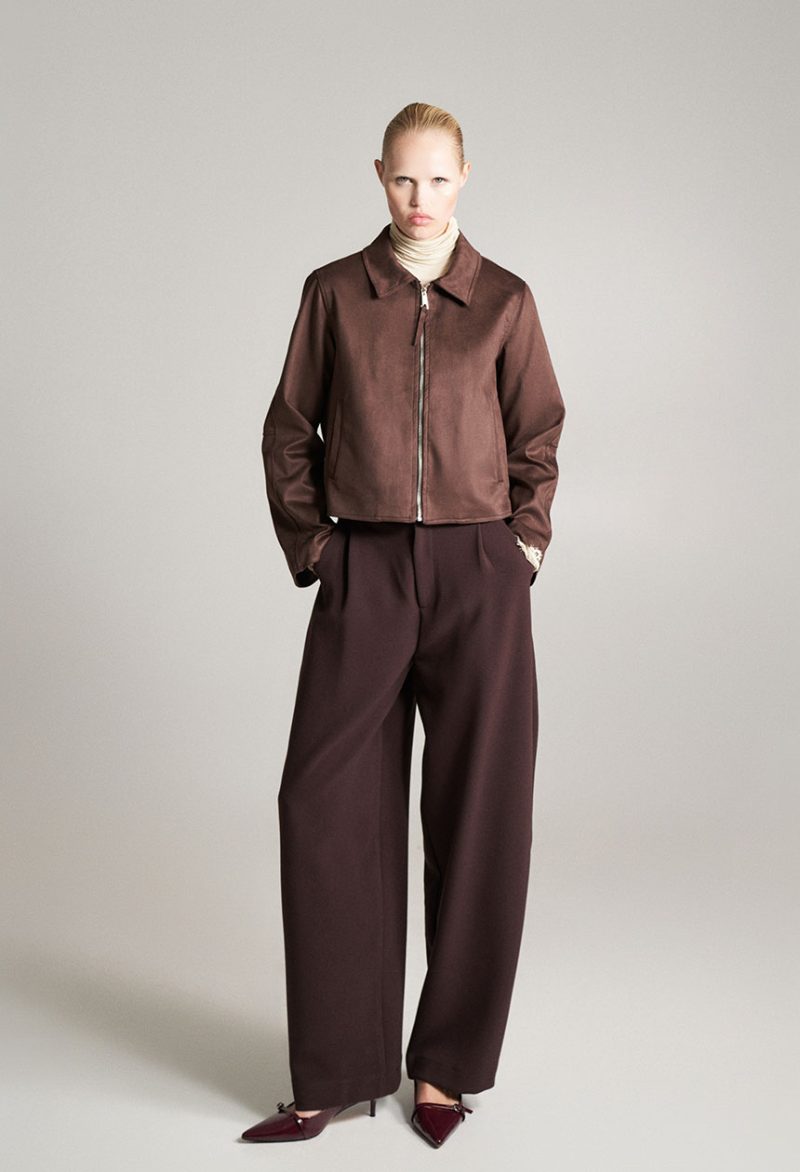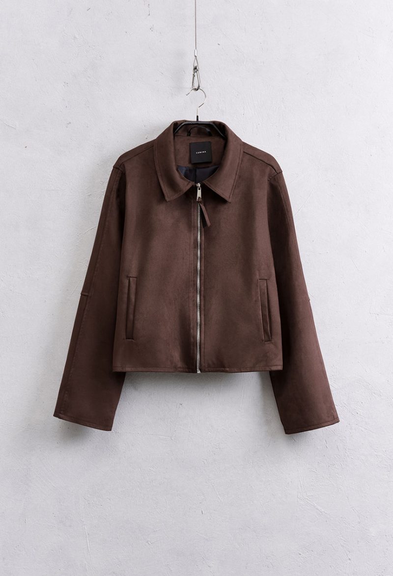 Μπουφάν από συνθετικό σουέτ,με κανονική εφαρμογή,εσωτερική επένδυση,πλαινές τσέπες,γιακάς,κλείνει με φερμουάρ.