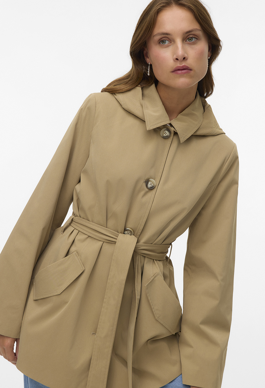 Καμπαρντίνα trenchcoat,με αποσπώμενη κουκούλα,ζώνη στη μέση,τσέπες,εσωτερική φόδρα,κλείνει με κουμπιά,σε μεσαίο μήκος.