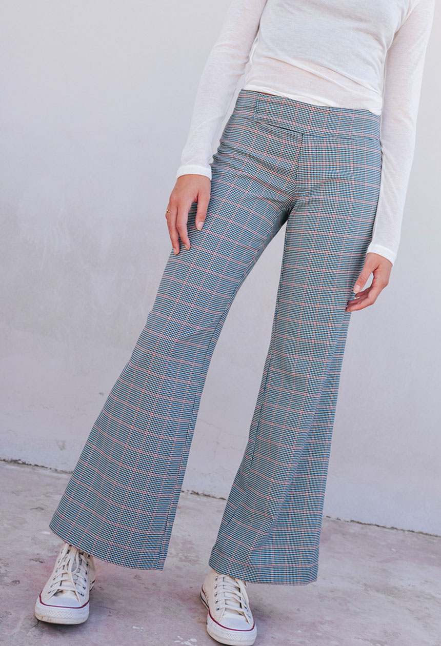 Χαμηλόμεσο παντελόνι καρό σε ίσια γραμμή, κλείσιμο μπροστά με φερμουάρ.