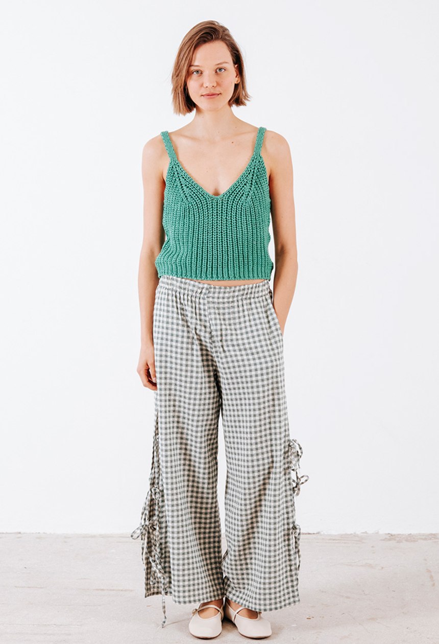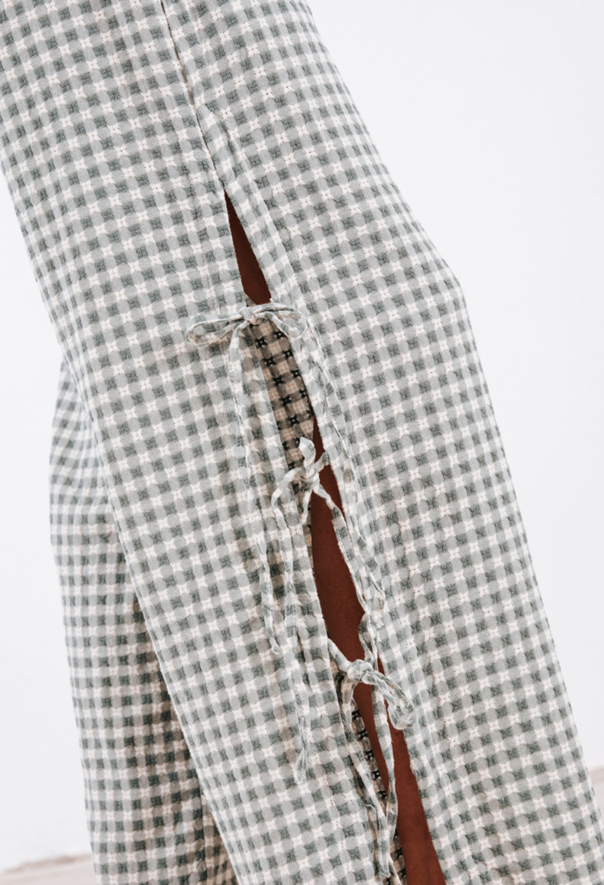 Καρό παντελόνι με λάστιχο στη μέση και δεσίματα στο πλάι.