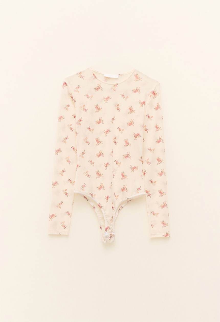 Κορμάκι floral μακρυμάνικο, με τέλεια εφαρμογή, λαιμόκοψη,πολύ μαλακό τούλινο ύφασμα,κλείνει από κάτω με κλιπς.