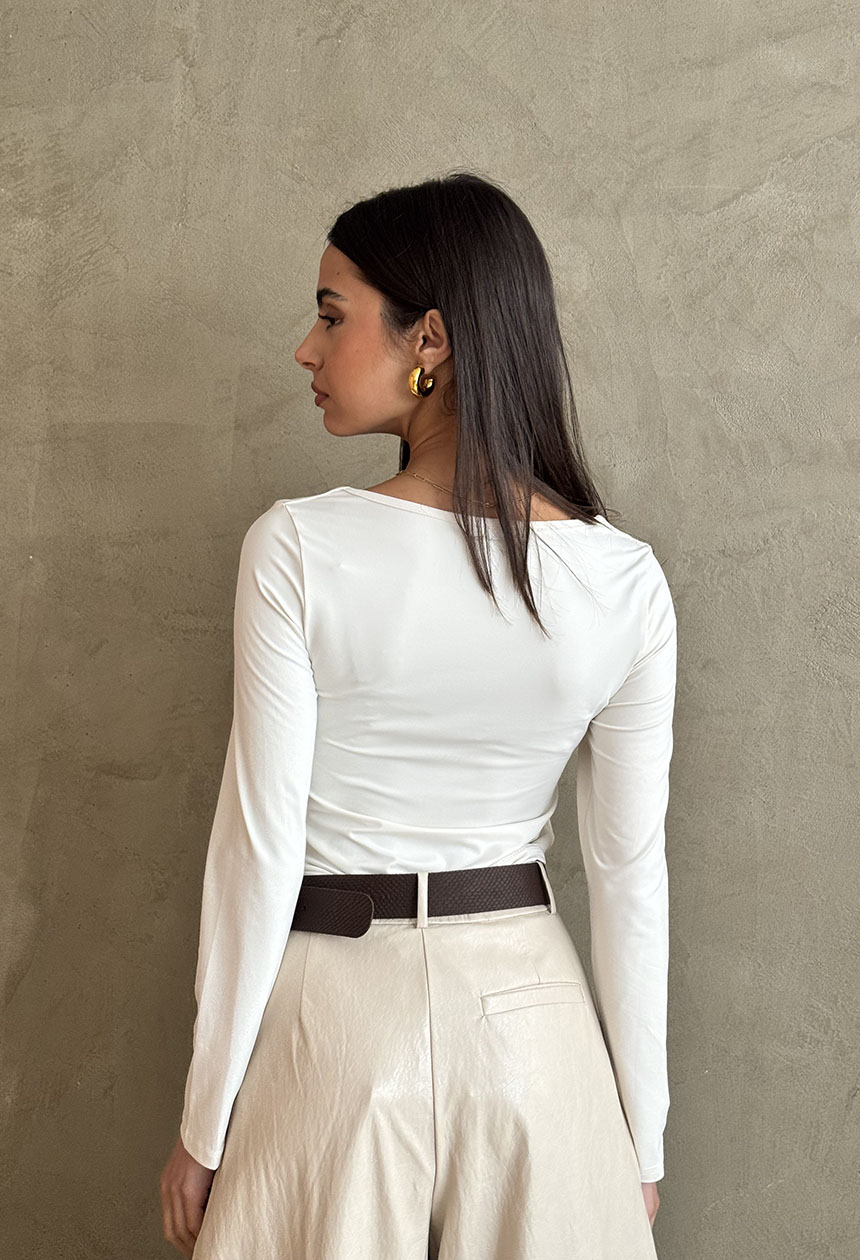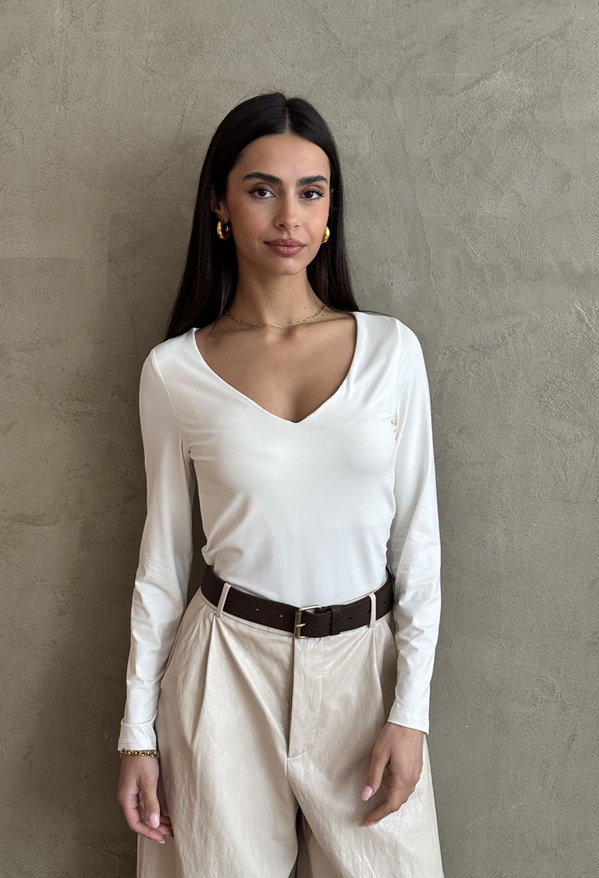 Κορμάκι μακρυμάνικο, λαιμόκοψη με βαθύ V ντεκολτέ .