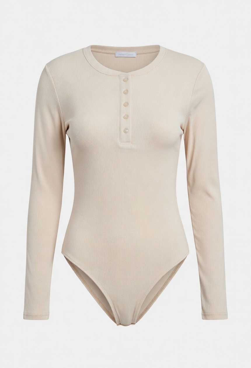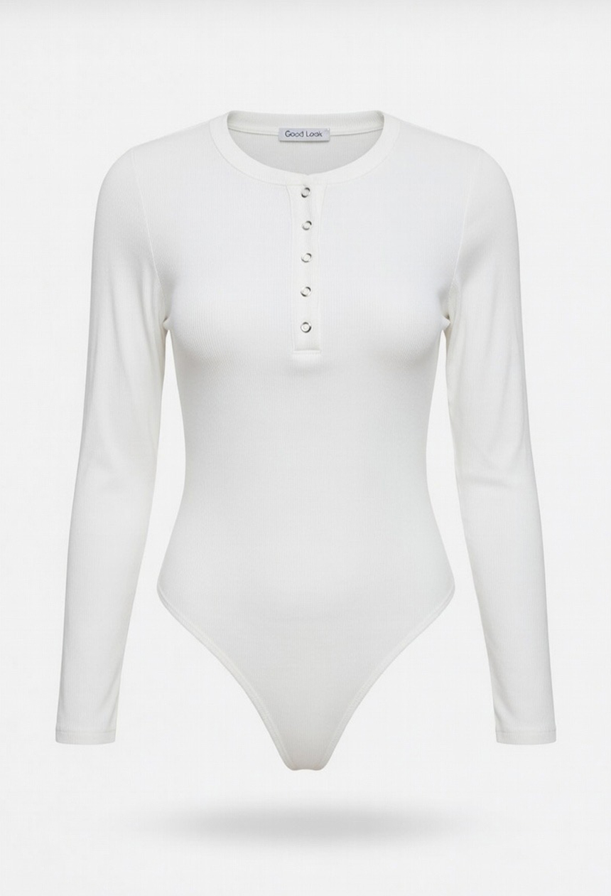 Κορμάκι ριπ,μακρυμάνικο,με τέλεια εφαρμογή,λαιμόκοψη με κουμπάκια στο στήθος,πολύ μαλακό,κλείνει από κάτω με κλιπς.