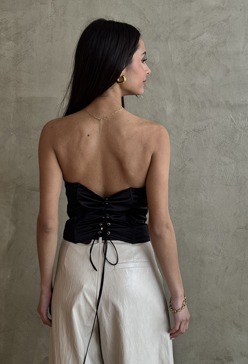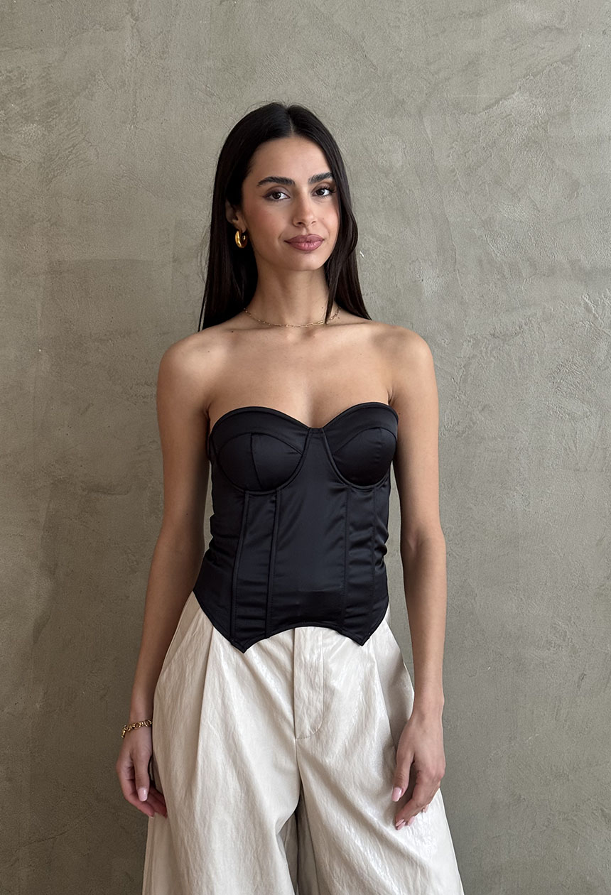 Κορσέ τοπ-μπούστο,με cap στο στήθος,δετό με κορδόνι στο πίσω μέρος για τέλεια εφαρμογή.