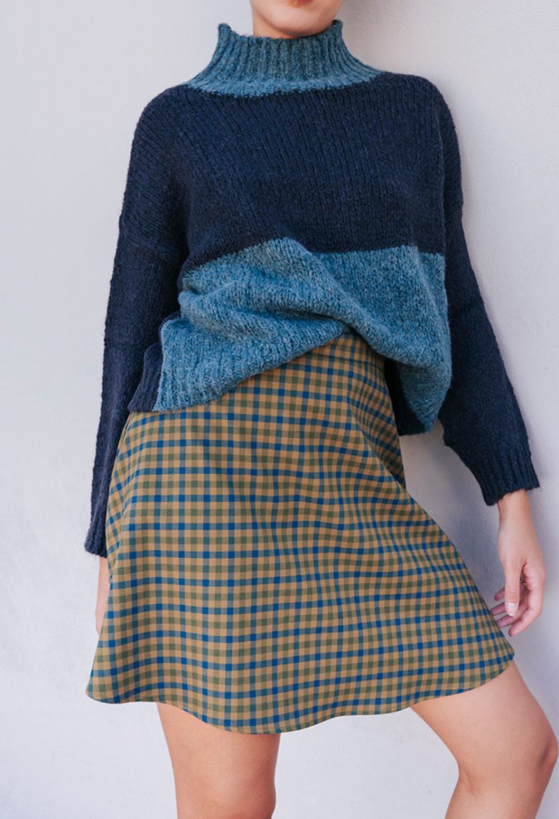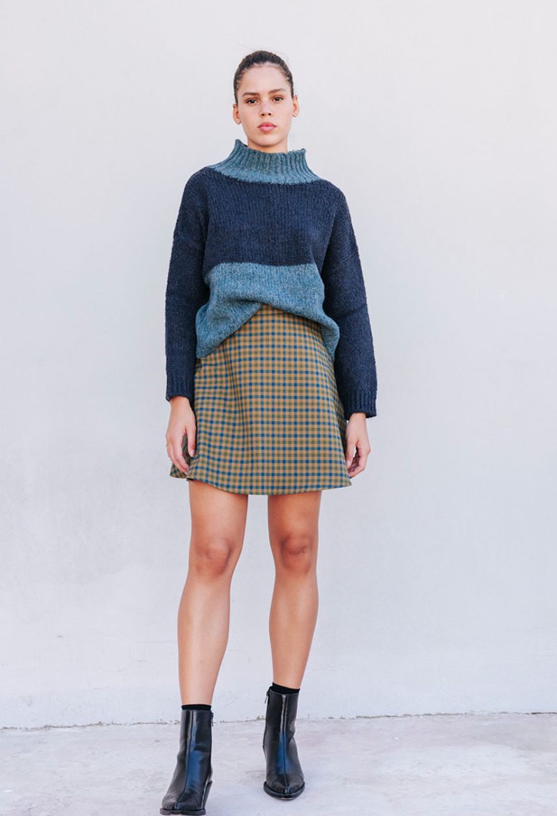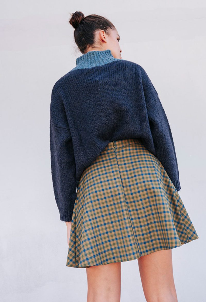 Μίνι καρό φούστα, κλείσιμο με κρυφό φερμουάρ πίσω.