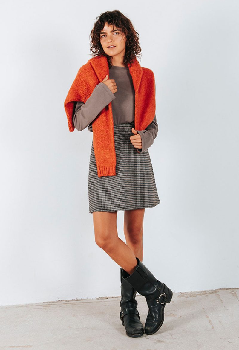 Μίνι καρό φούστα με λάστιχο στη μέση.