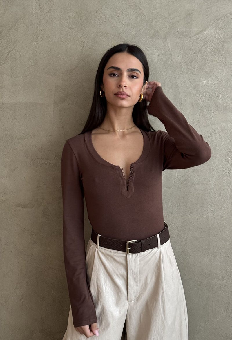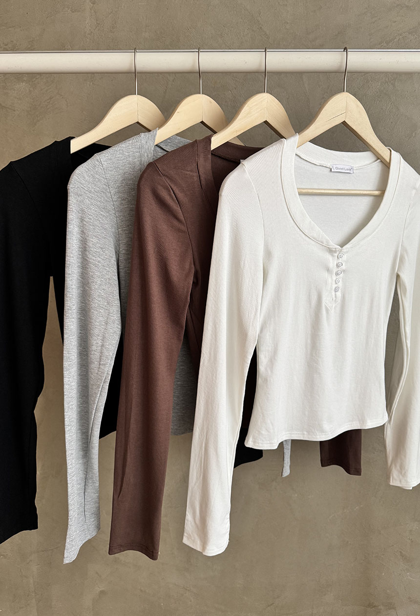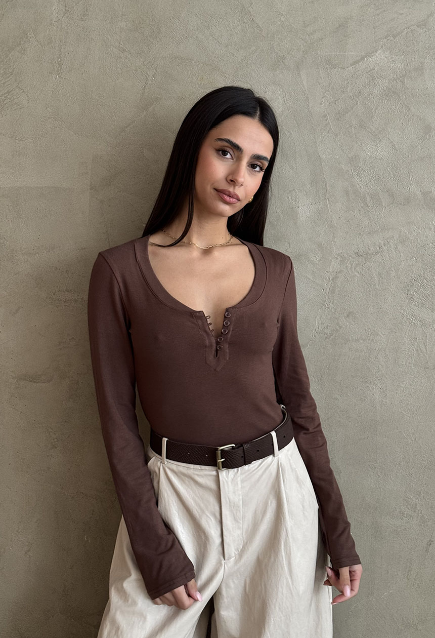 Μπλούζα μακρυμάνικη,με λαιμόκοψη χαμηλό μπούστο και κουμπάκια.