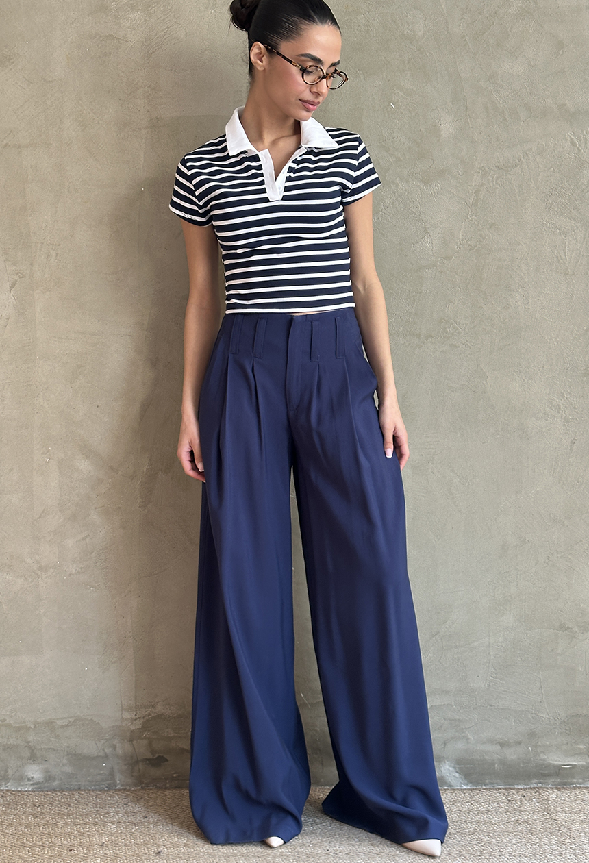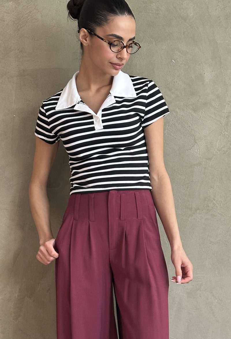 Μπλούζα crop,με εφαρμογή στο σώμα,ριγέ σχέδιο,κοντό,κοφτό μανίκι,με κουμπάκια και γιακά.