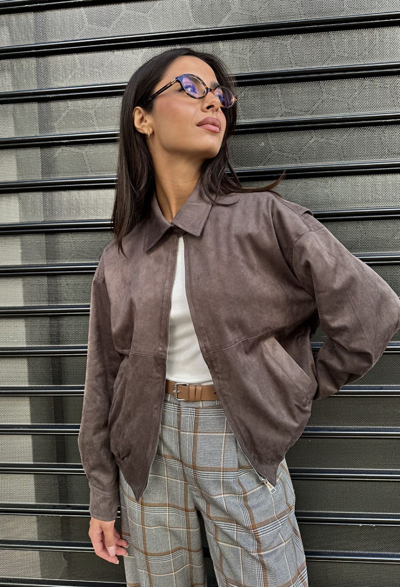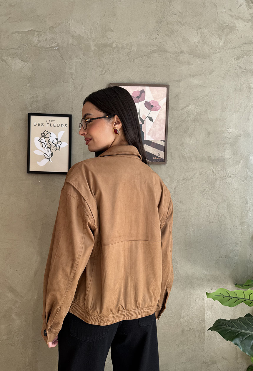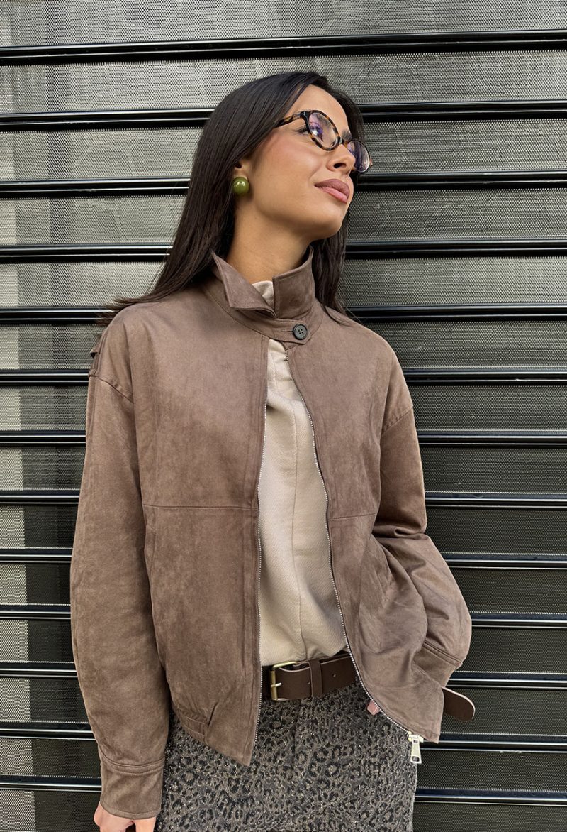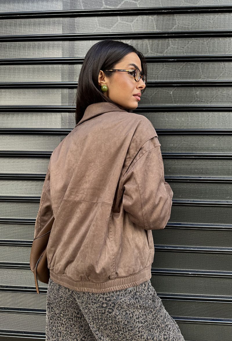 Μπουφάν σε bomber γραμμή,κανονική εφαρμογή, με γιακά και κουμπί στο λαιμό, λάστιχο στη μέση,με διαγώνιες πλαινές τσέπες,κλείνει με φερμουάρ.