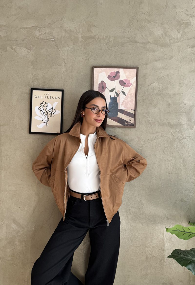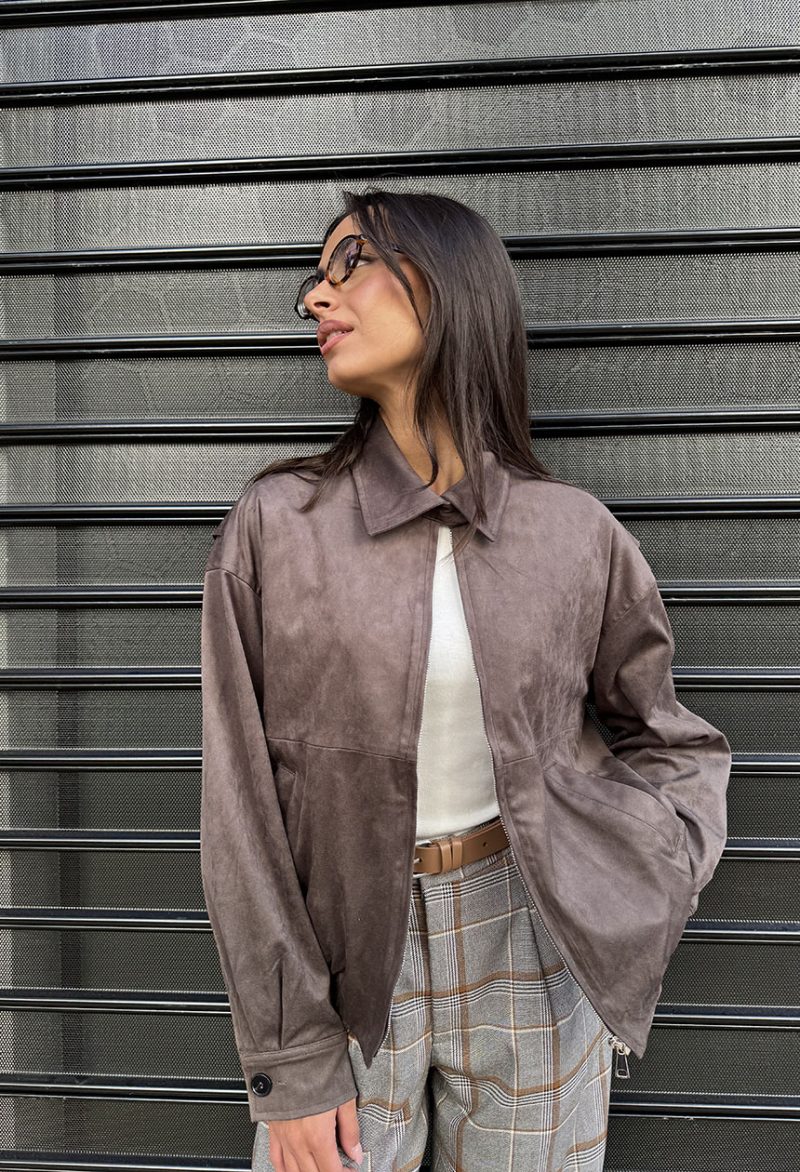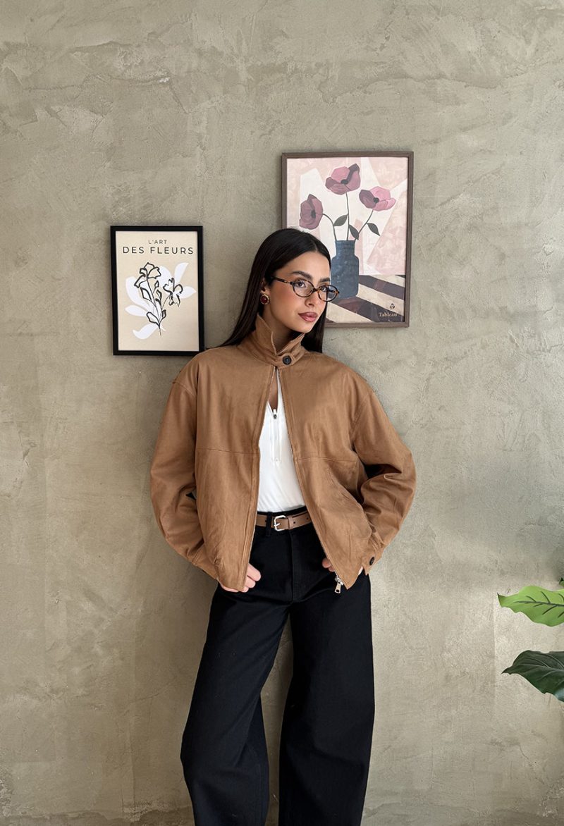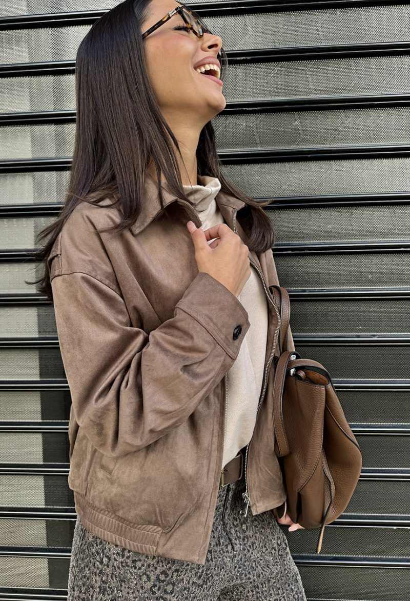 Μπουφάν σε bomber γραμμή,κανονική εφαρμογή, με γιακά και κουμπί στο λαιμό, λάστιχο στη μέση,με διαγώνιες πλαινές τσέπες,κλείνει με φερμουάρ.