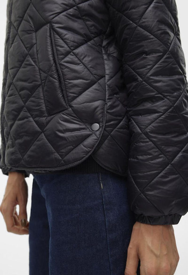 Μπουφάν καπιτονέ σε κοντό μήκος,με ψηλό όρθιο γιακά,λάστιχο στα μανίκια,πλαινές τσέπες,πλήρως επενδυμένο,κλείνει με φερμουάρ.