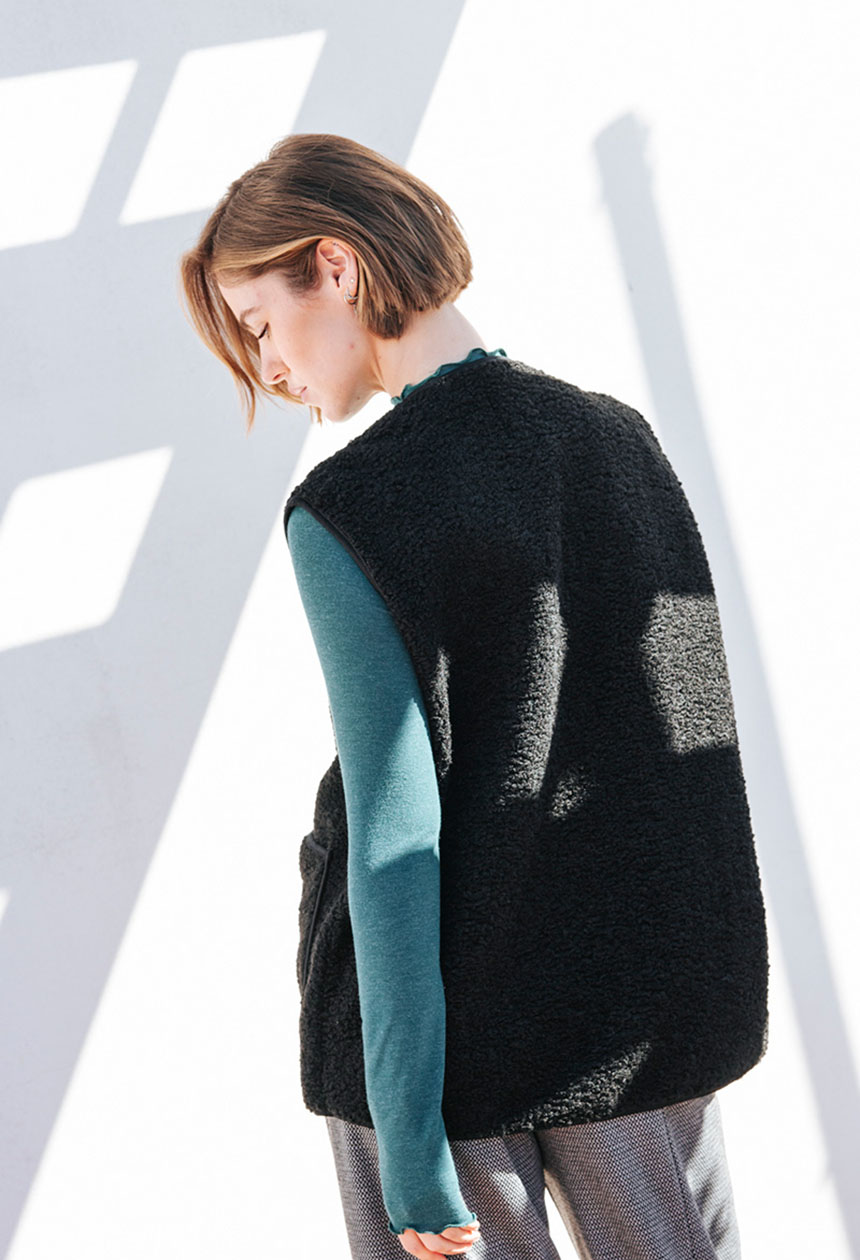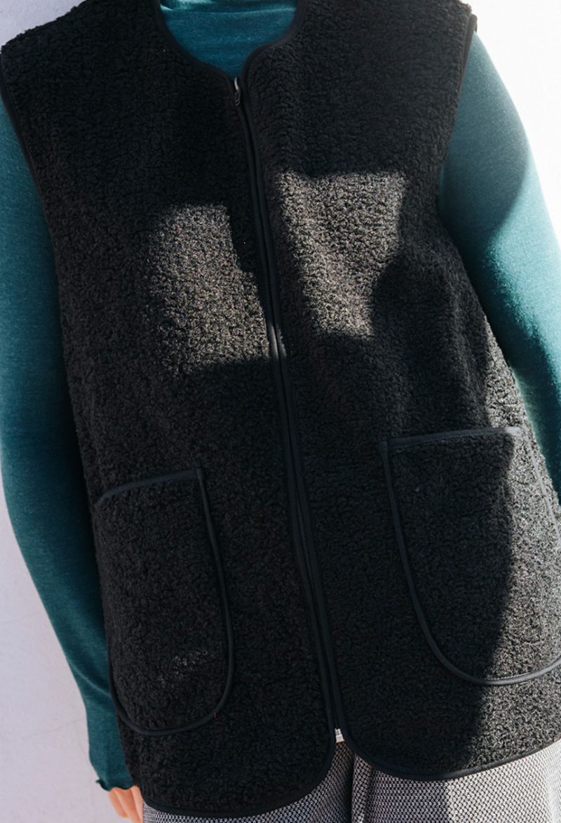 Γιλέκο μπουκλέ με φερμουάρ και τσέπες μπροστά.