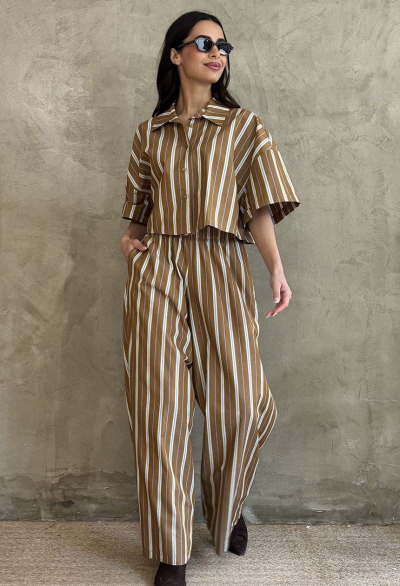 Παντελόνα ριγέ Alba brown
