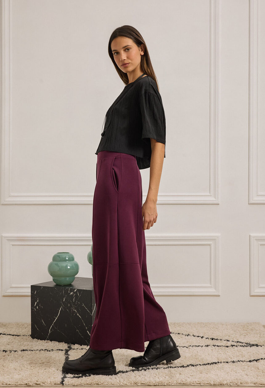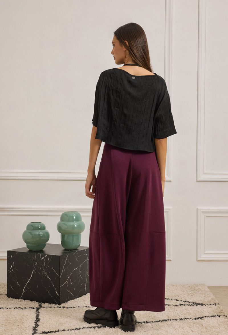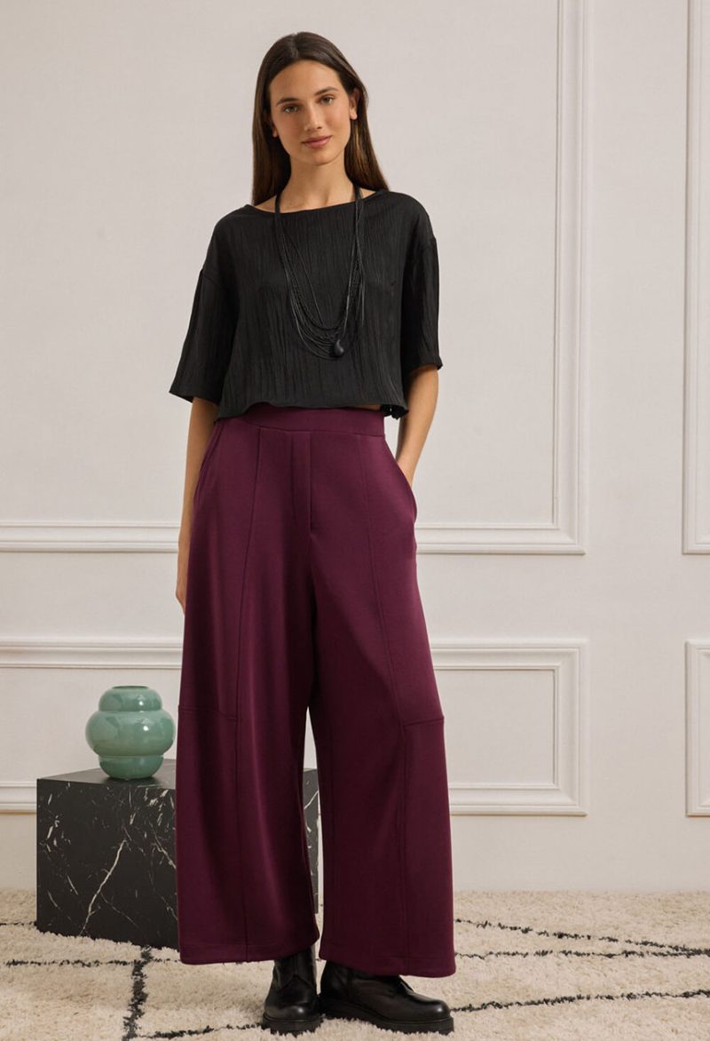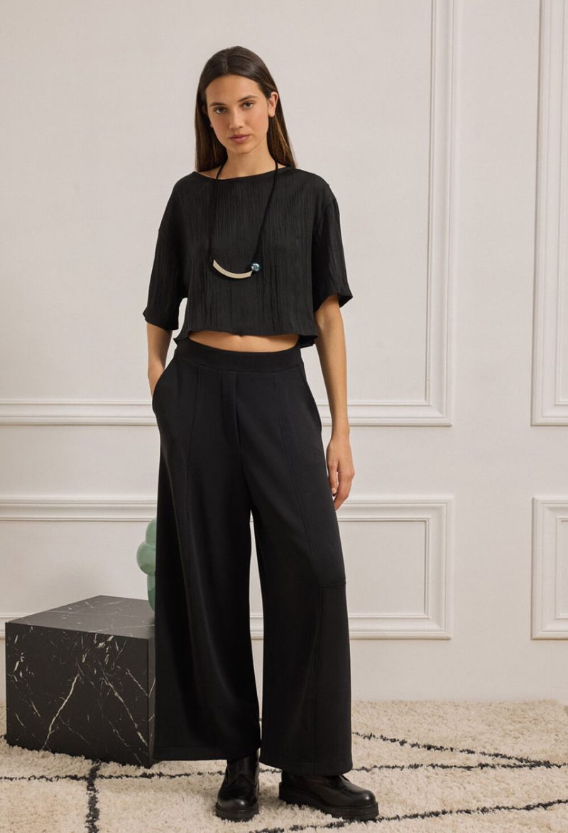 Παντελόνι από απαλό, ελαστικό ύφασμα, μοντέρνα και άνετη γραμμή. Διαθέτει πλαϊνές τσέπες, φαρδύ ζωνάκι στη μέση. 48% Μοντάλ- 48% Πολυεστέρας