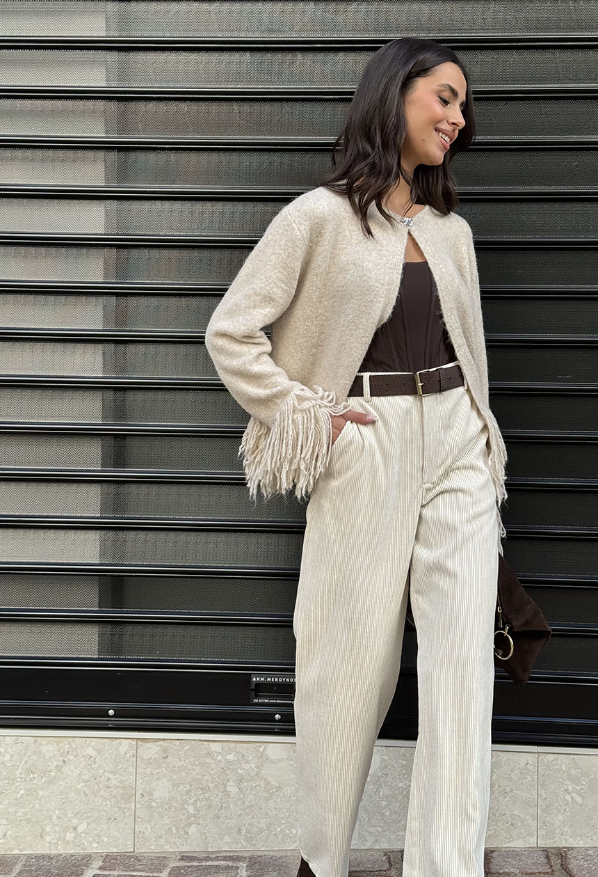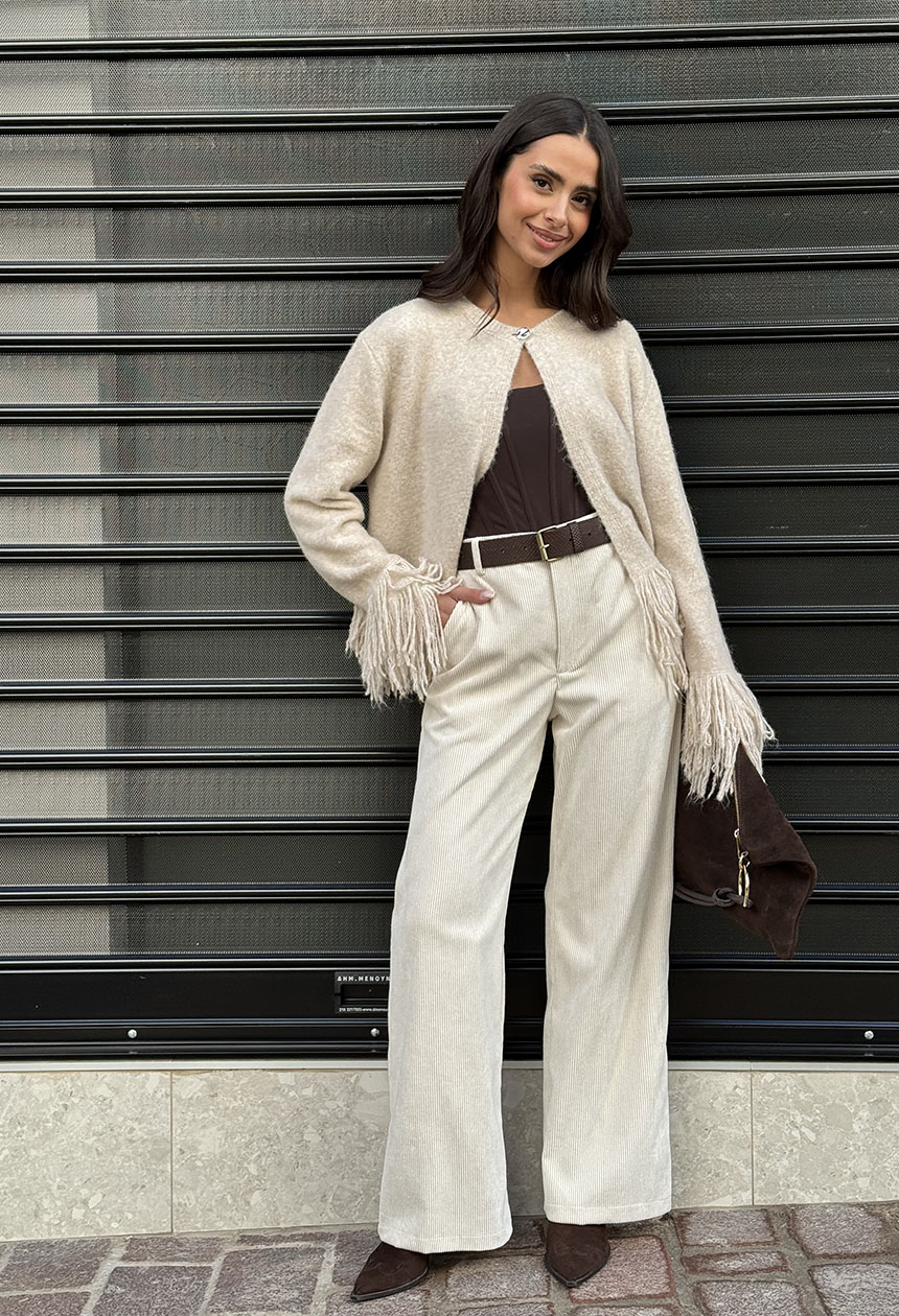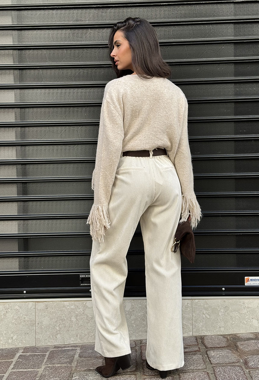 Παντελόνι κοτλέ σε ίσια γραμμή,πλαινές τσέπες,λάστιχο πίσω στη μέση για τέλεια εφαρμογή.