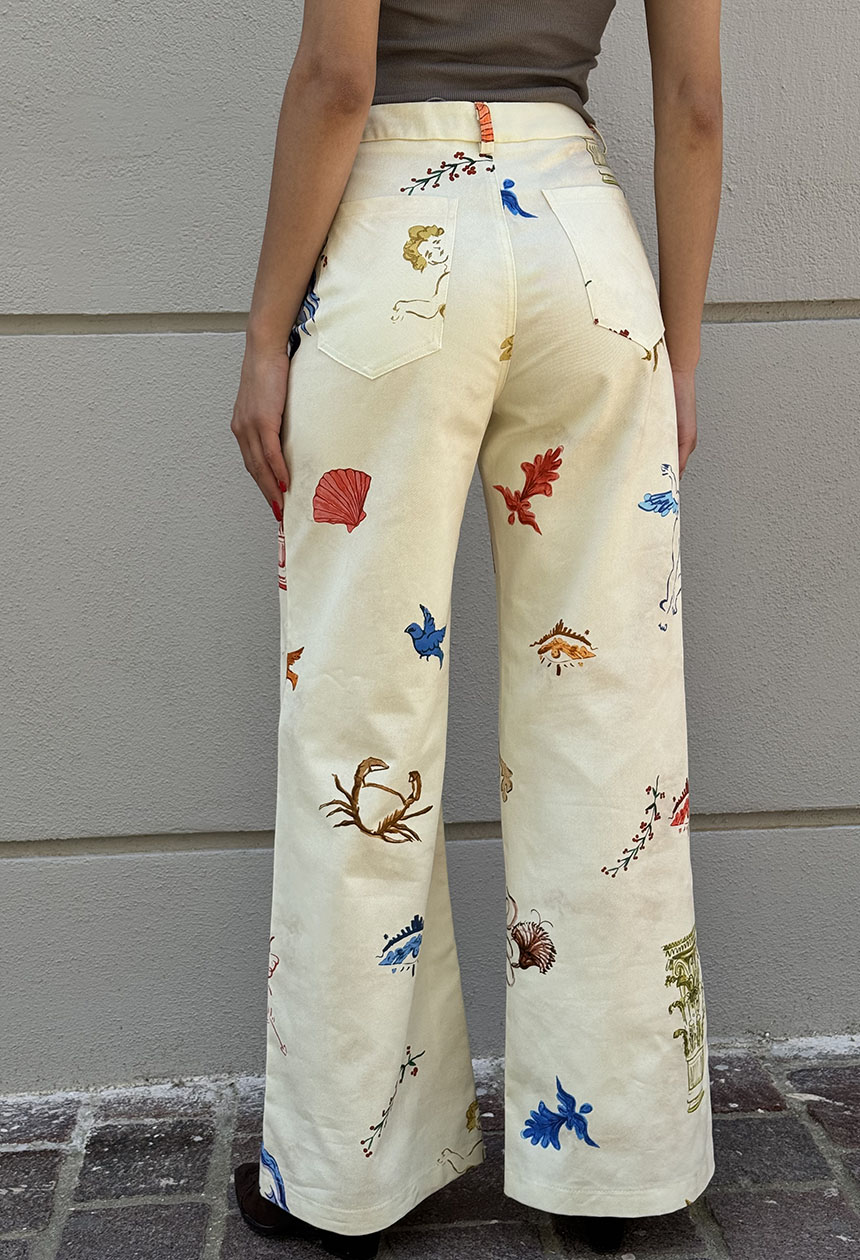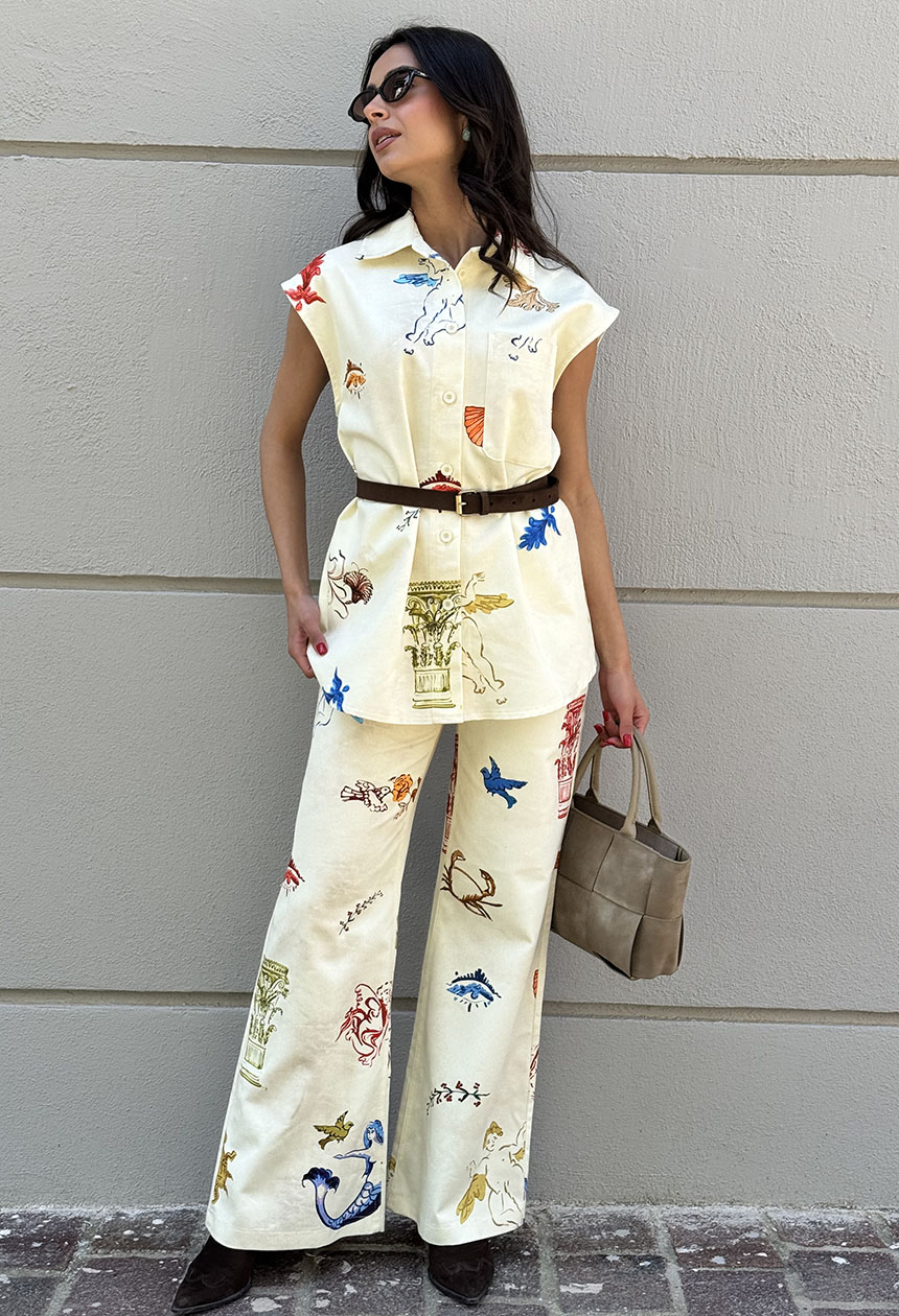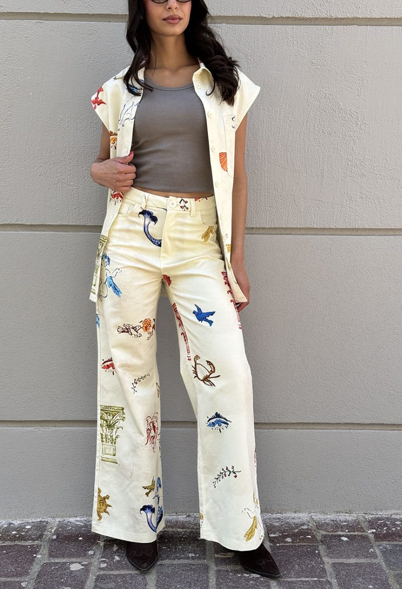 Παντελόνι ψηλόμεσο,με εμπριμέ σχέδιο,κανονική εφαρμογή,τσέπες,κλείνει με φερμουάρ και κουμπί.