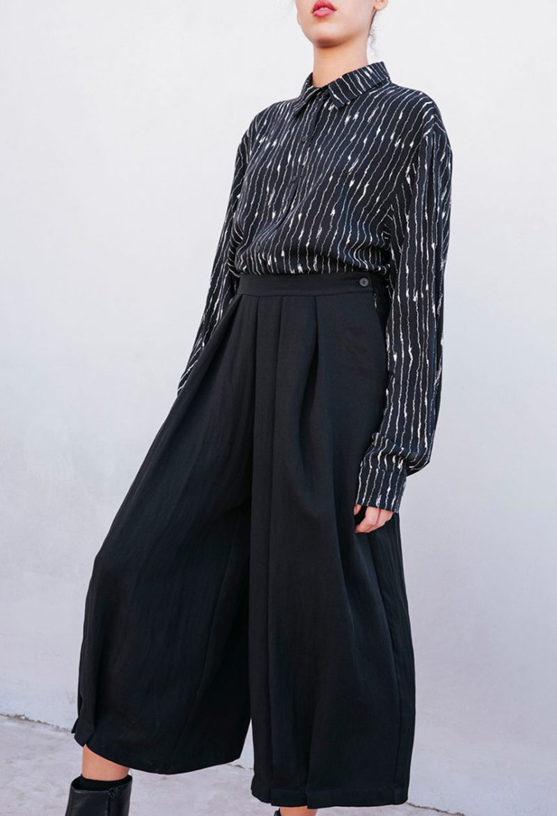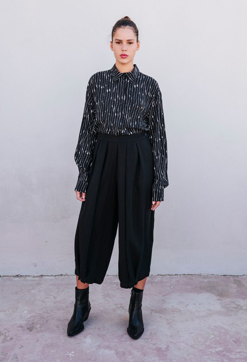 Παντελόνι με πιέτες μπροστά, τσέπες στο πλάι και κλείσιμο στο πλάι με κουμπί και φερμουάρ.