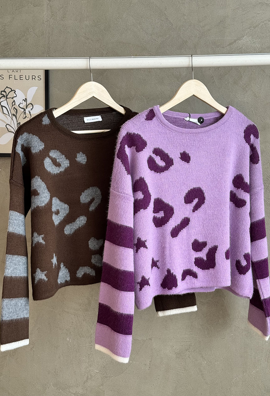 Πλεκτή μακριμάνικη μπλούζα,κοντό μήκος,λαιμόκοψη,με σχέδιο animal.