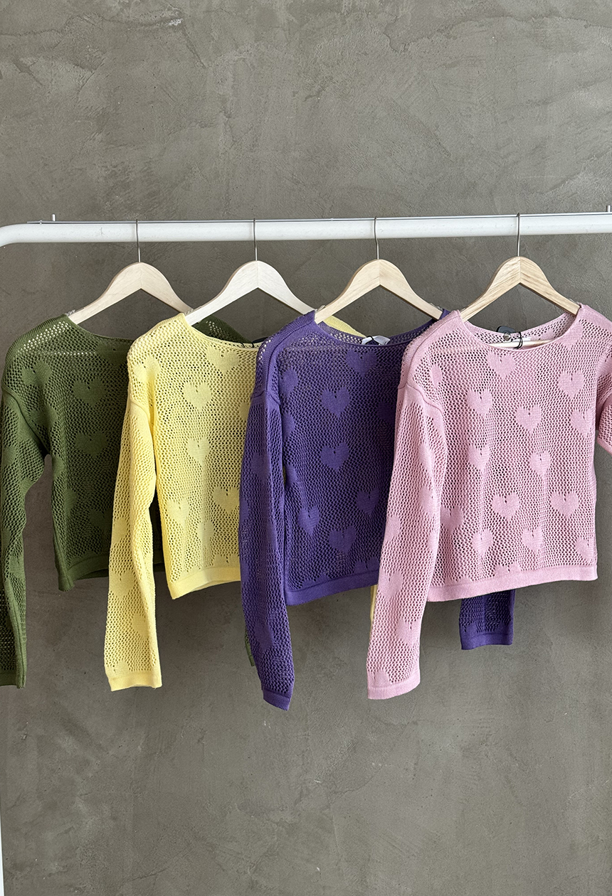 Μπλούζα crop με λαιμόκοψη,ριχτή γραμμή,διακριτικό σχέδιο καρδιές,με τρυπητή μαλακή πλέξη.