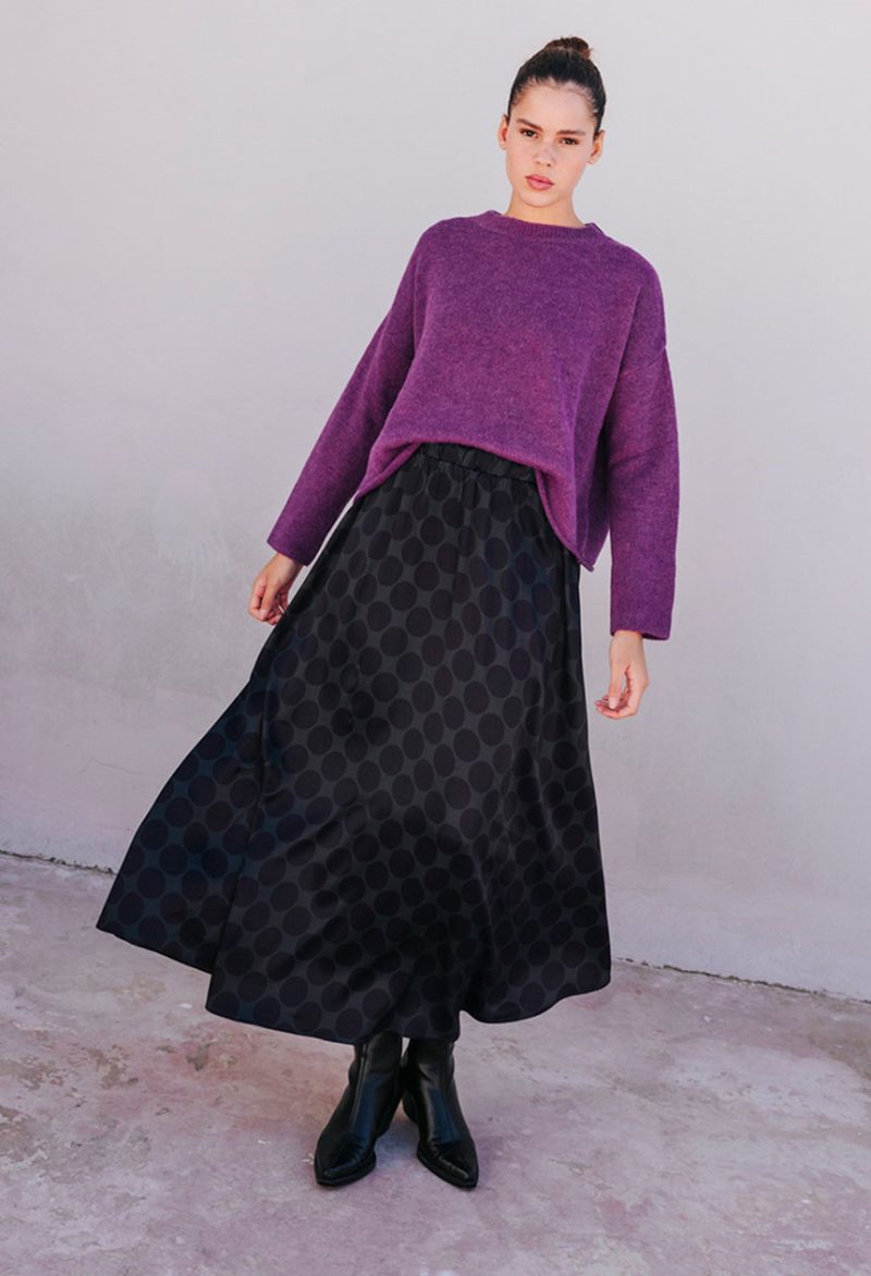 Πουα φούστα σατέν με λάστιχο στη μέση.