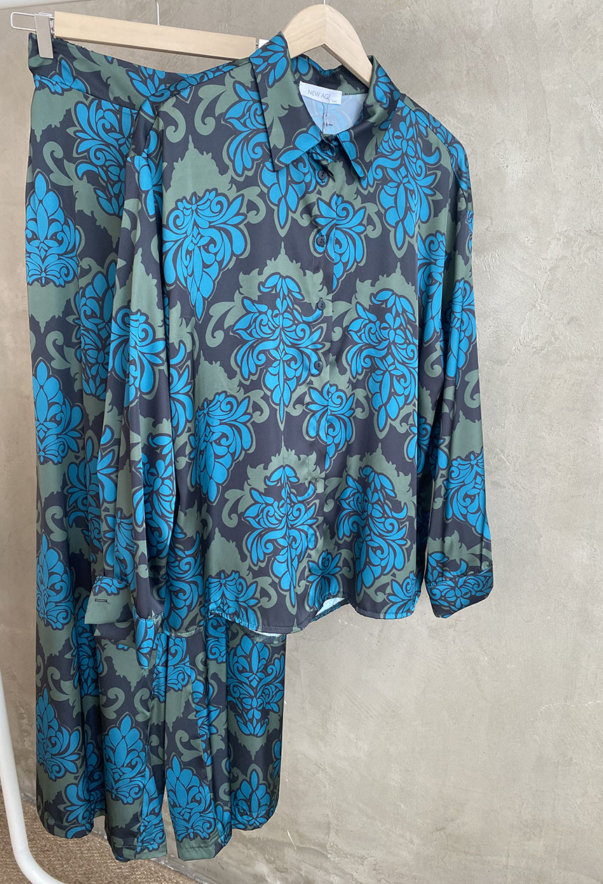 Πουκάμισο σε ριχτή άνετη γραμμή,εμπριμέ σχέδιο,silky touch ύφασμα,γιακάς,κλείνει κουμπιά.