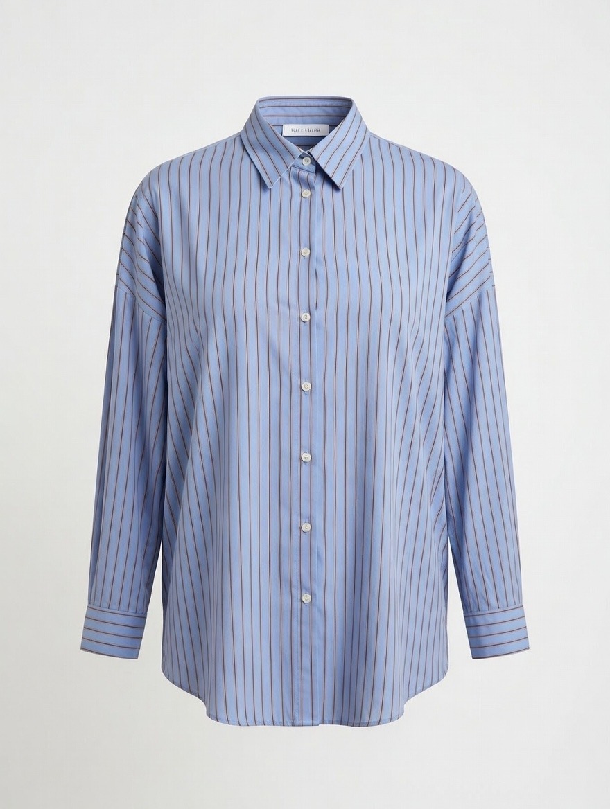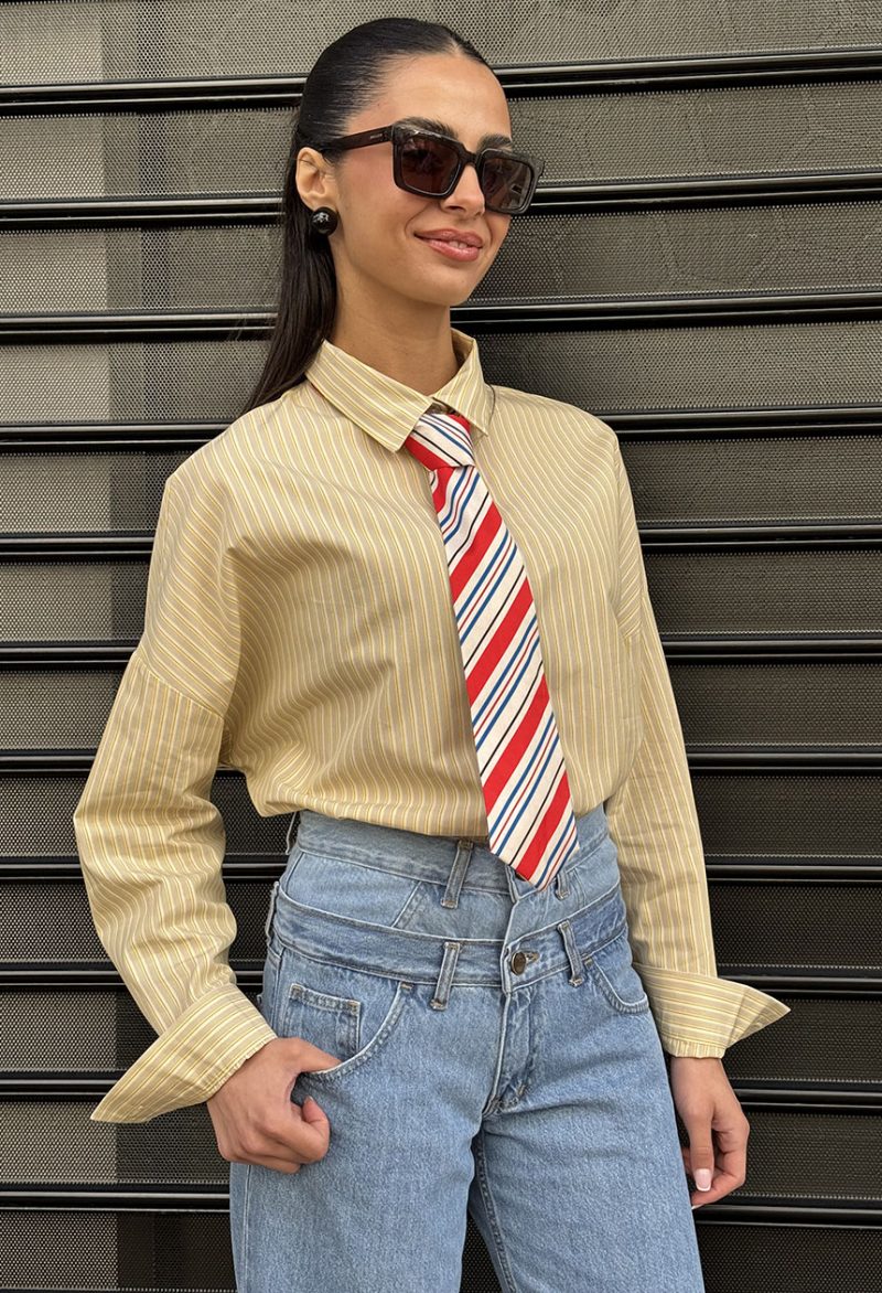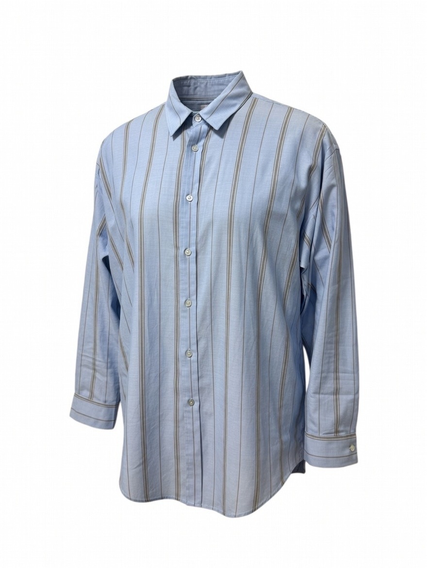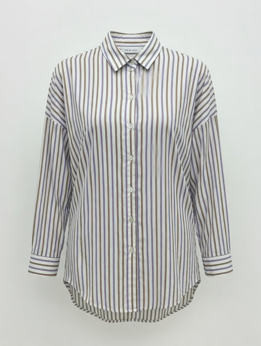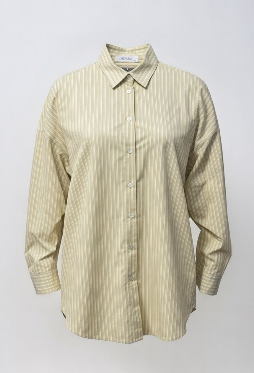 Πουκάμισο μακρυμάνικο ριγέ σε ριχτή oversized γραμμή, κουμπία, γιακάς