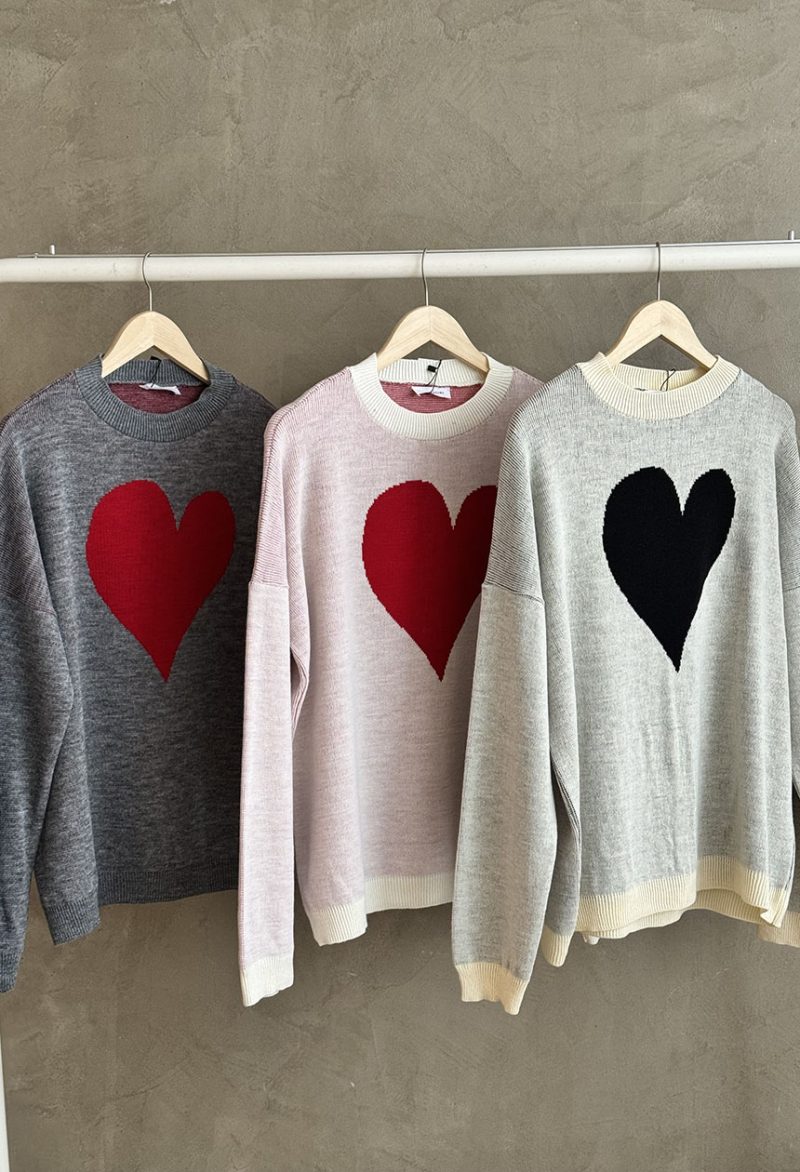Πουλόβερ unisex,σε ριχτή γραμμή,λαιμόκοψη με όμορφο σχέδιο καρδιάς.