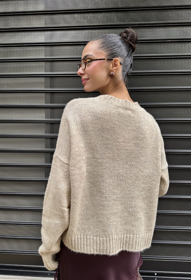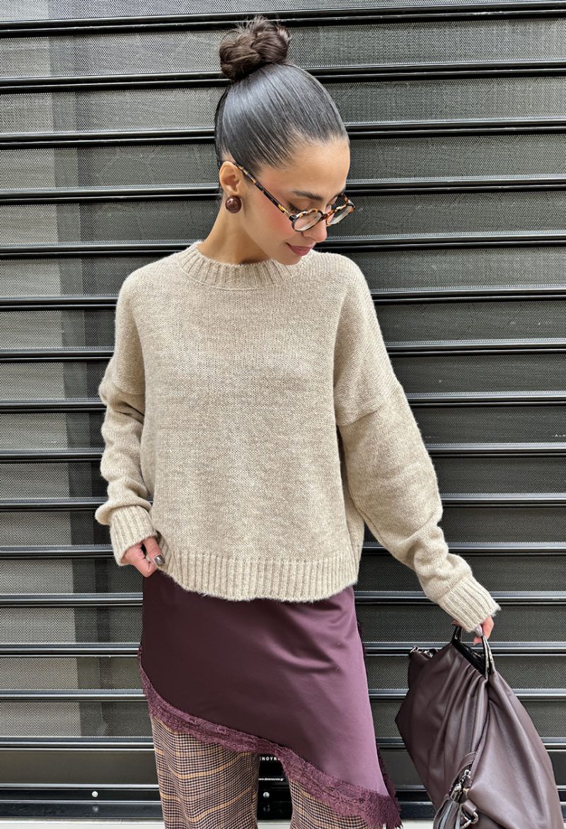 Πουλόβερ με πολύ μαλακή πλέξη,στρογγυλή λαιμόκοψη,σε άνετη γραμμή.