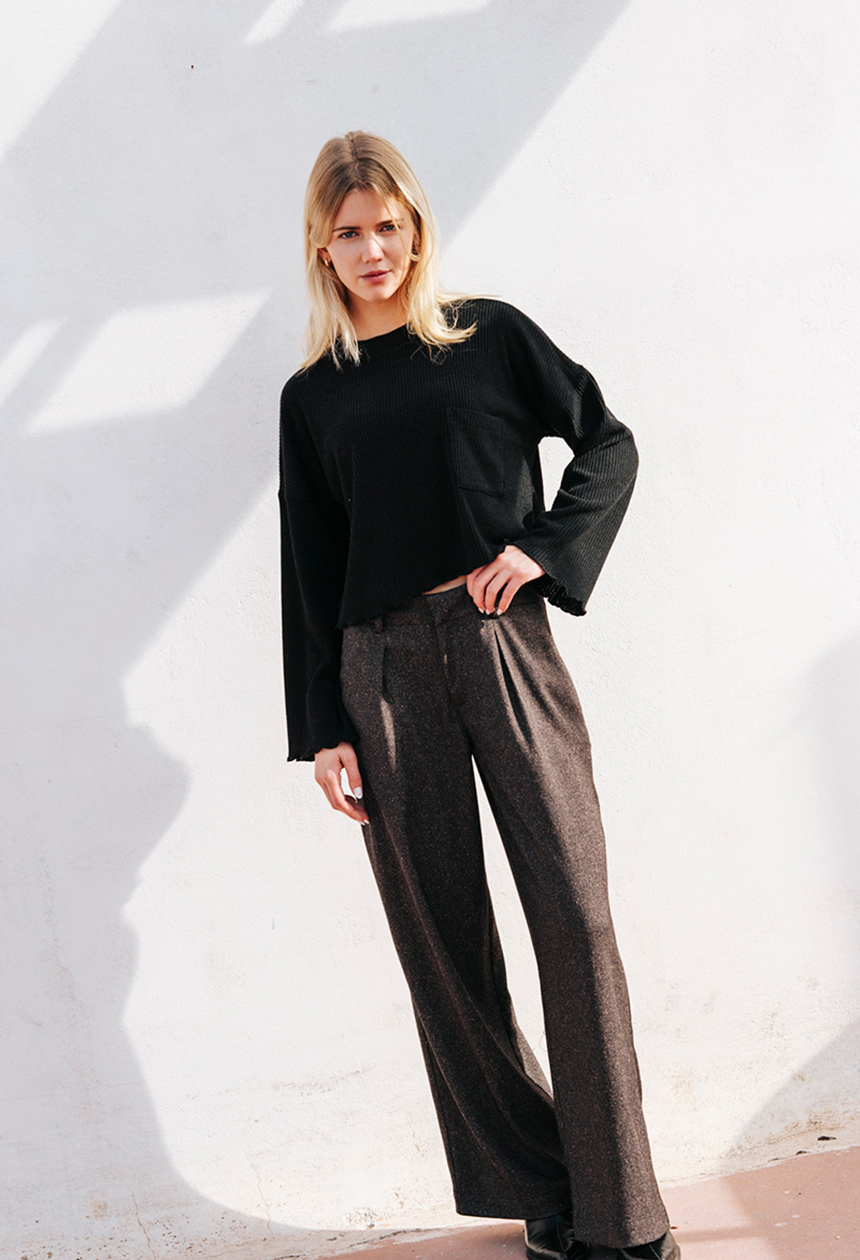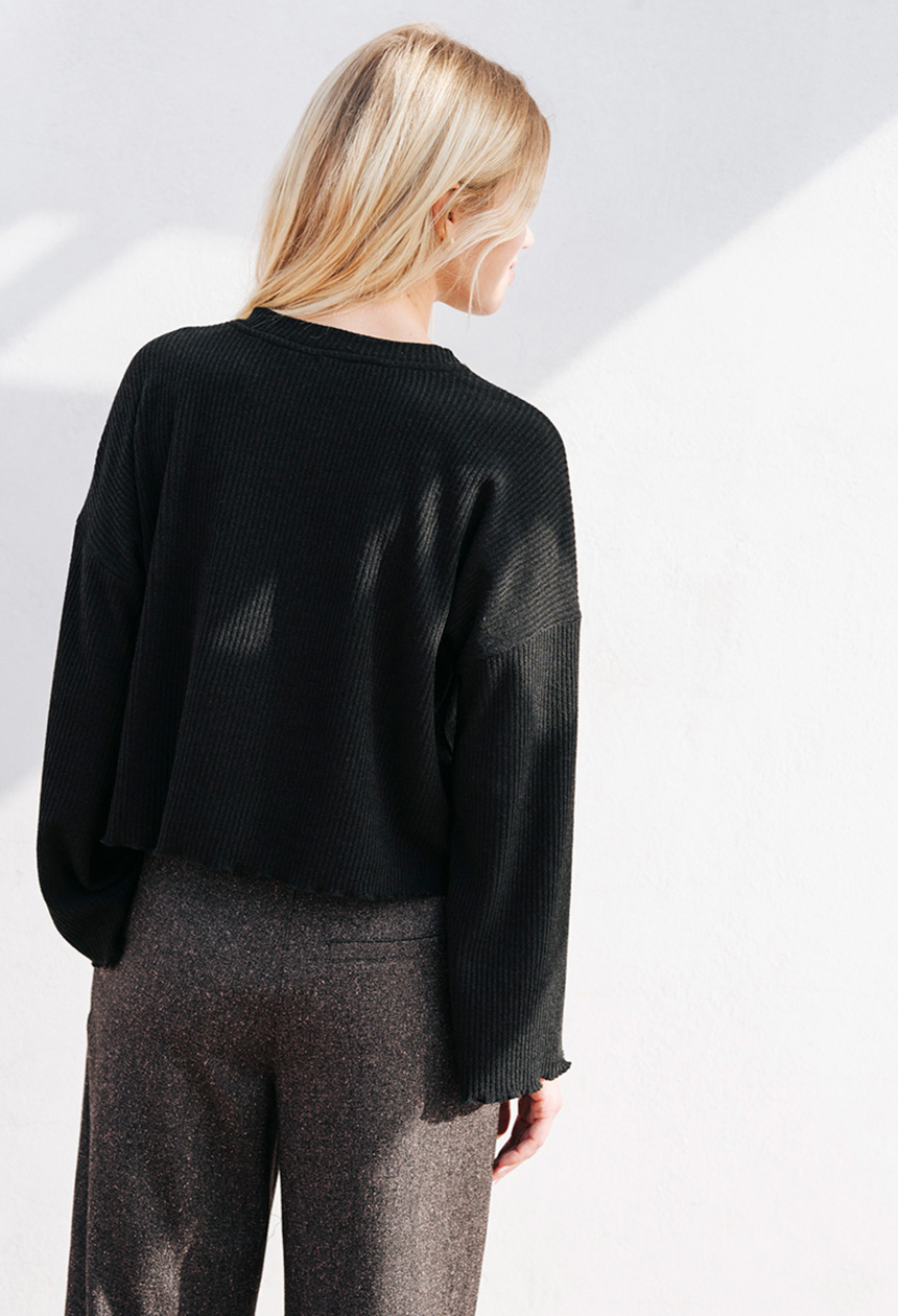 Κοντή μπλούζα φαρδιά με μακριά μανίκια και τσέπη μπροστά.