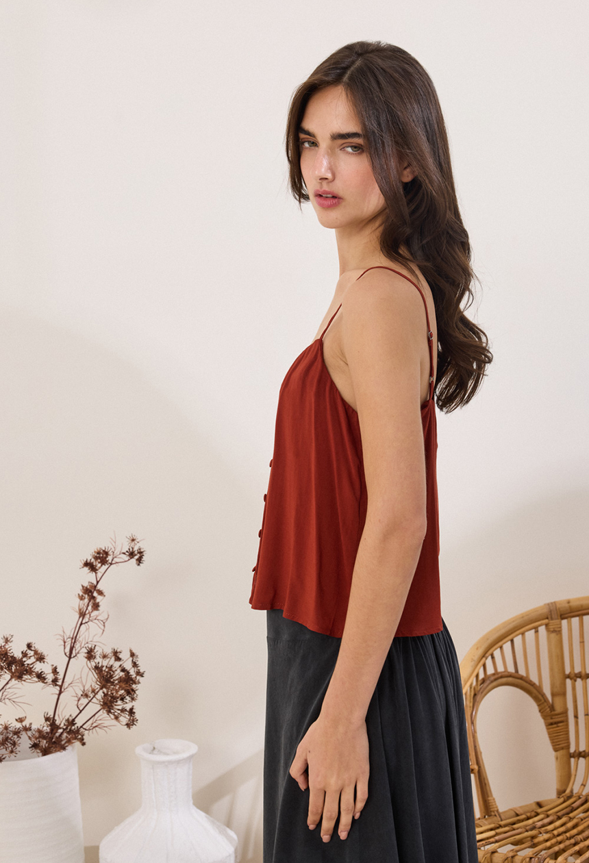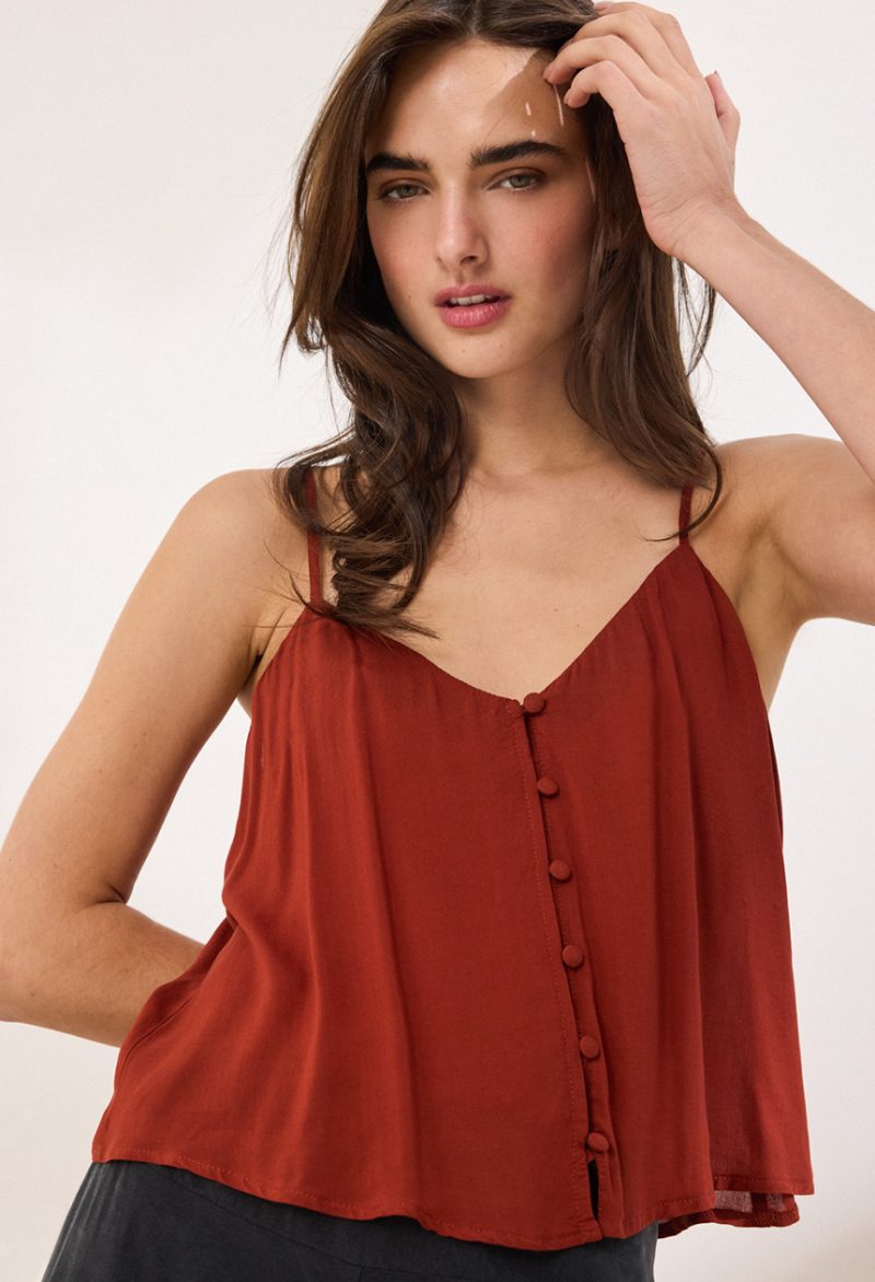 Sylvaine Τόπ cropped με κουμπιά και λεπτές τιράντες Brick