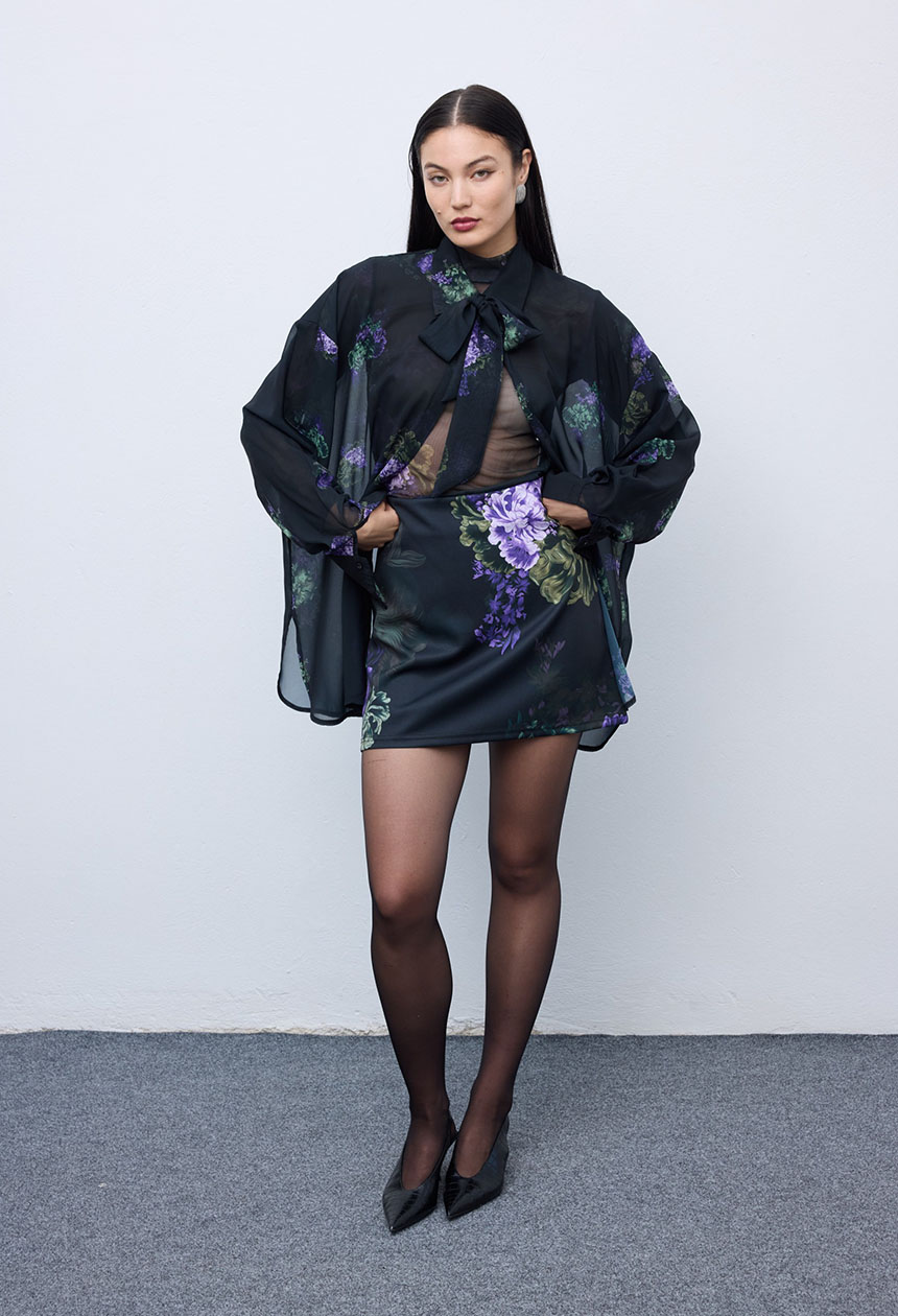 Φούστα μίνι floral, από printed silk-touch ύφασμα, με τέλεια εφαρμογή.