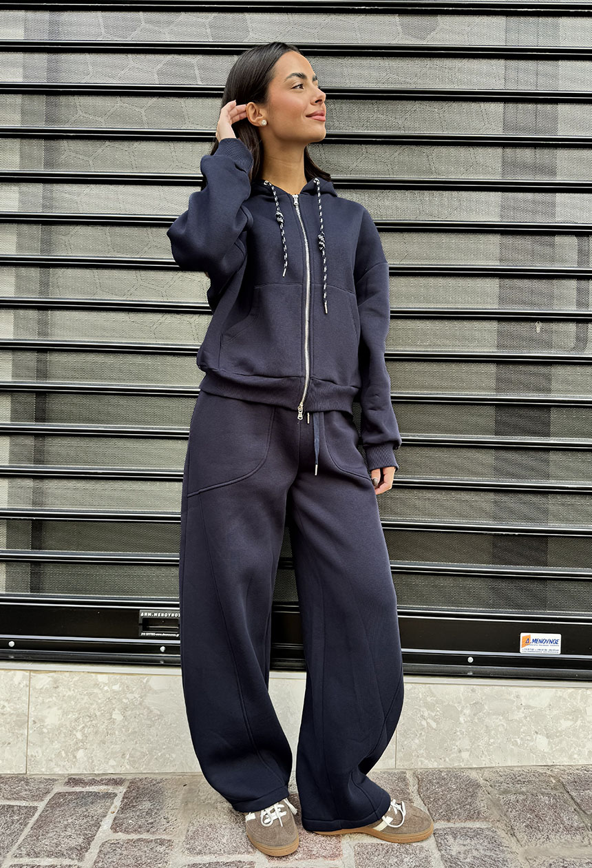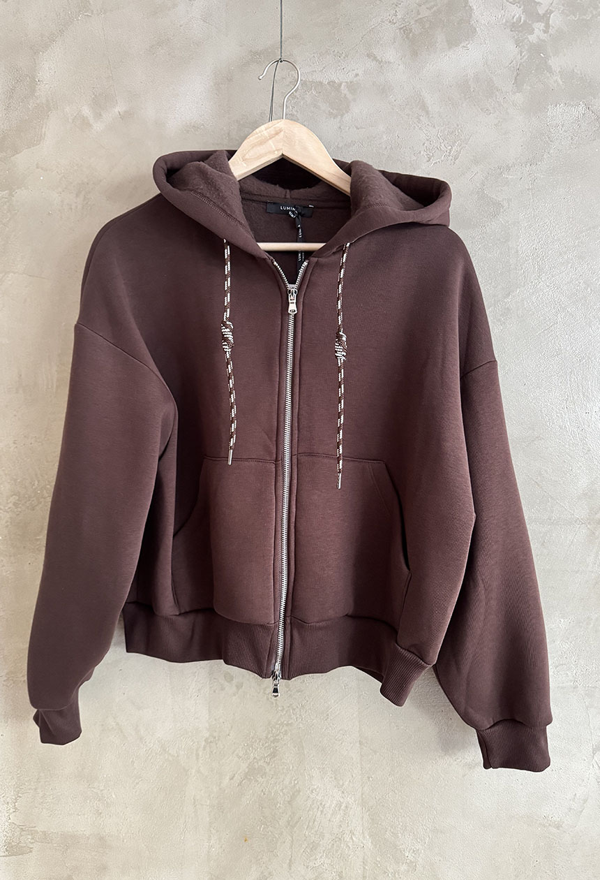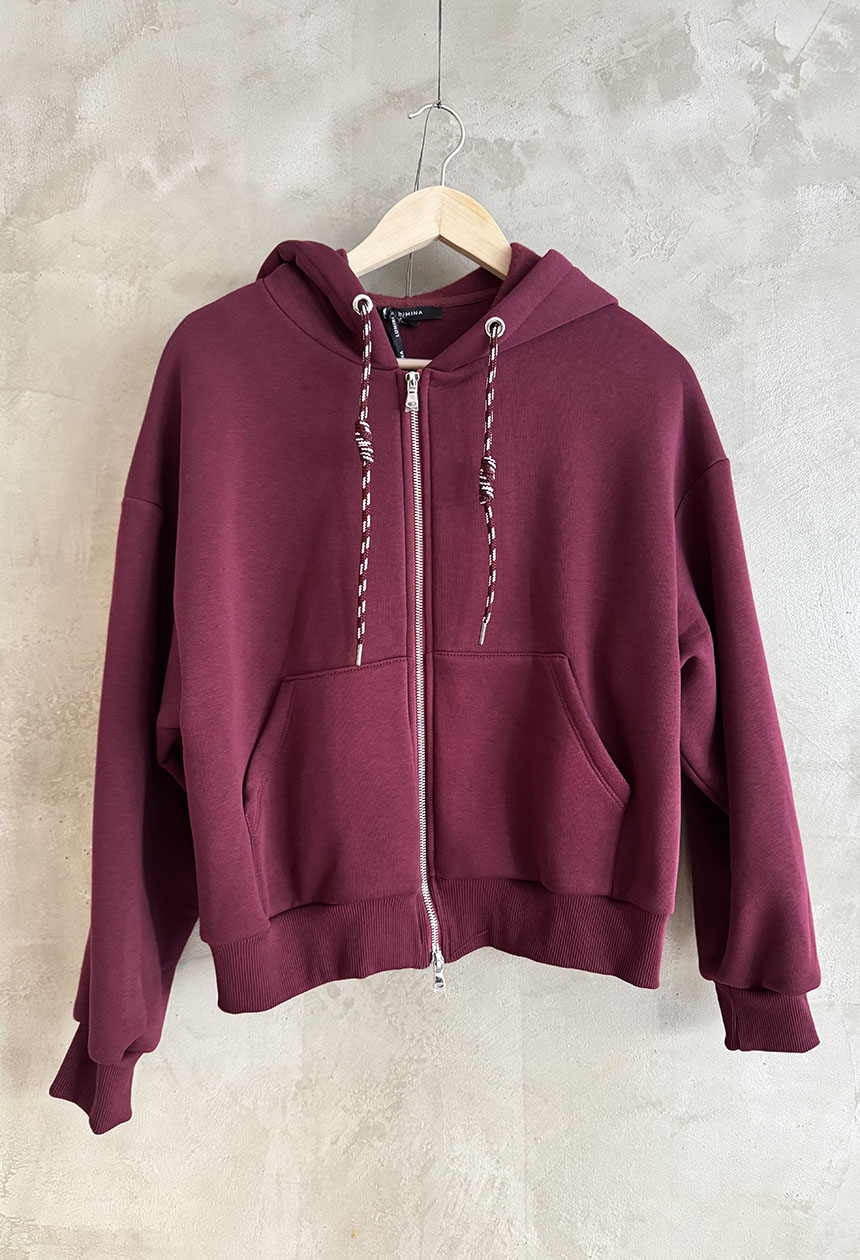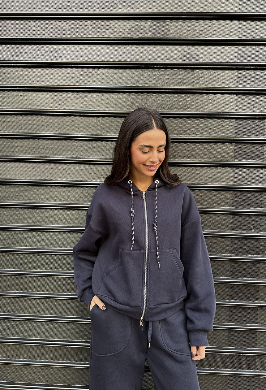 Ζακέτα από μείγμα βαμβακιού με επένδυση. Διαθέτει κουκούλα και τσέπες. Κλείσιμο μπροστά με φερμουάρ. Κανονική εφαρμογή, διαθέσιμο σε μεγέθη S/M και M/L. Συνδυάζεται με το παντελόνι Felpa.